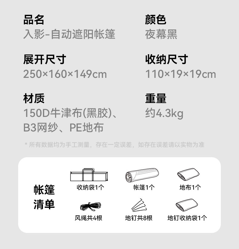 | Tamaño de expansión de la tienda | 250*160*149 |