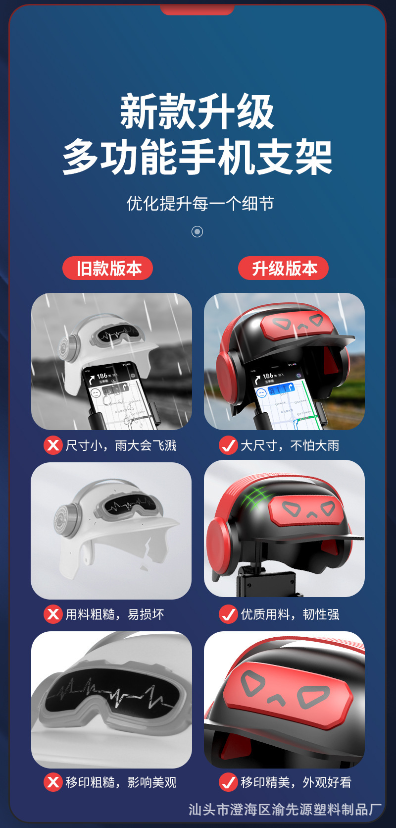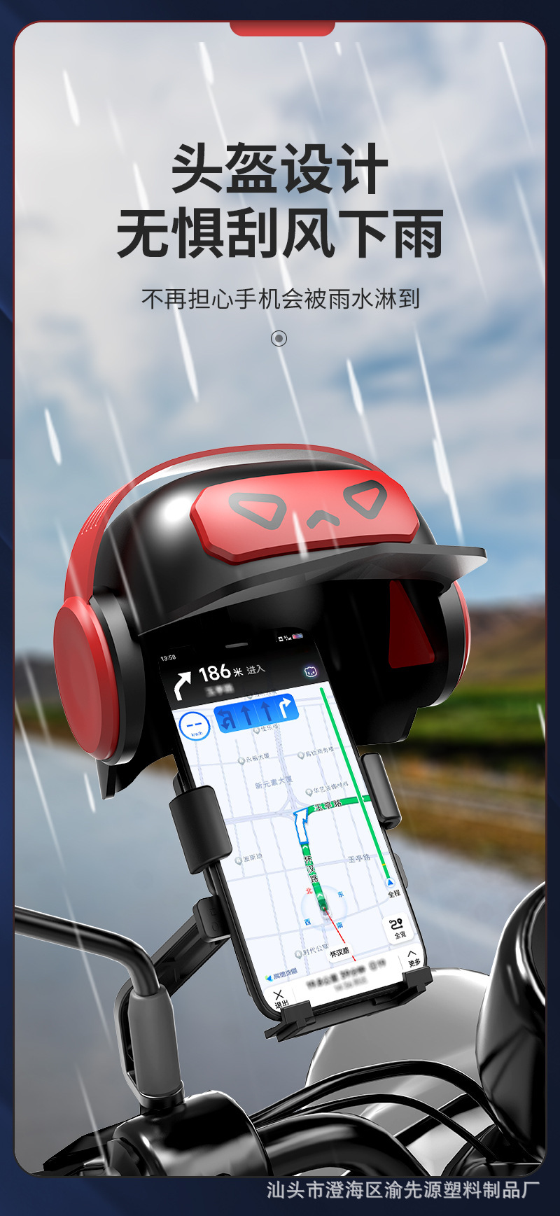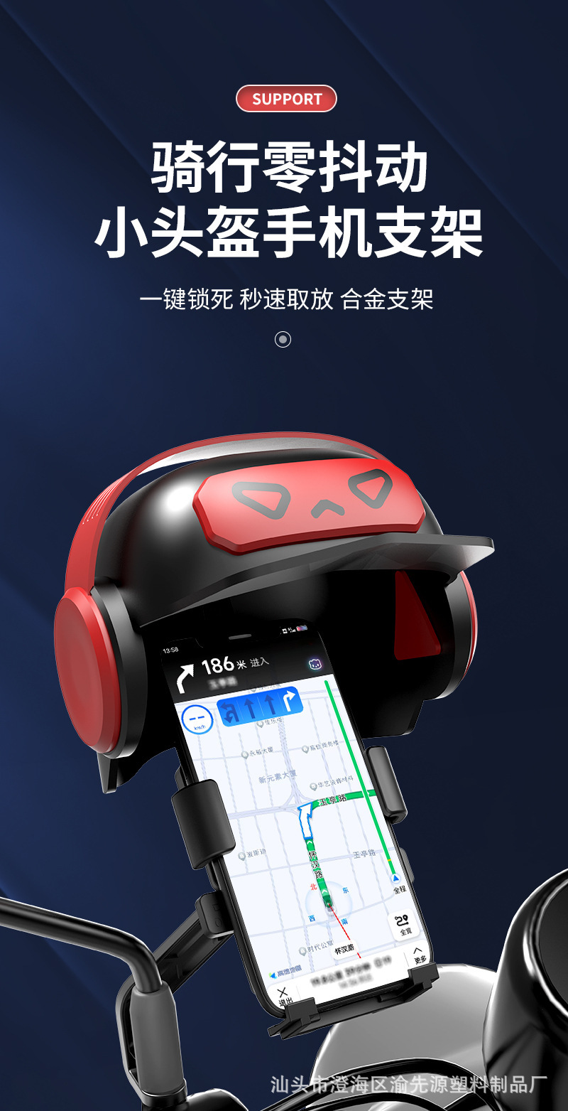 Pequeño casco de motocicleta eléctrica ciclismo teléfono móvil soporte de navegación para llevar jinete sombrilla lluvia Luban casco móvil marco transfronterizo