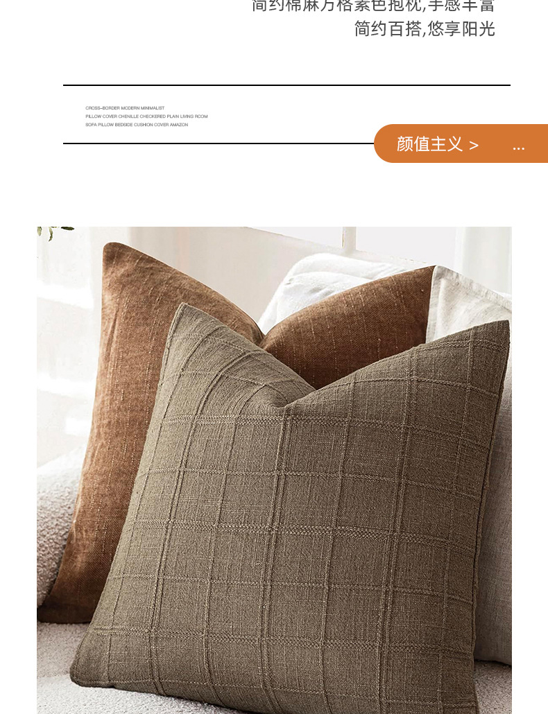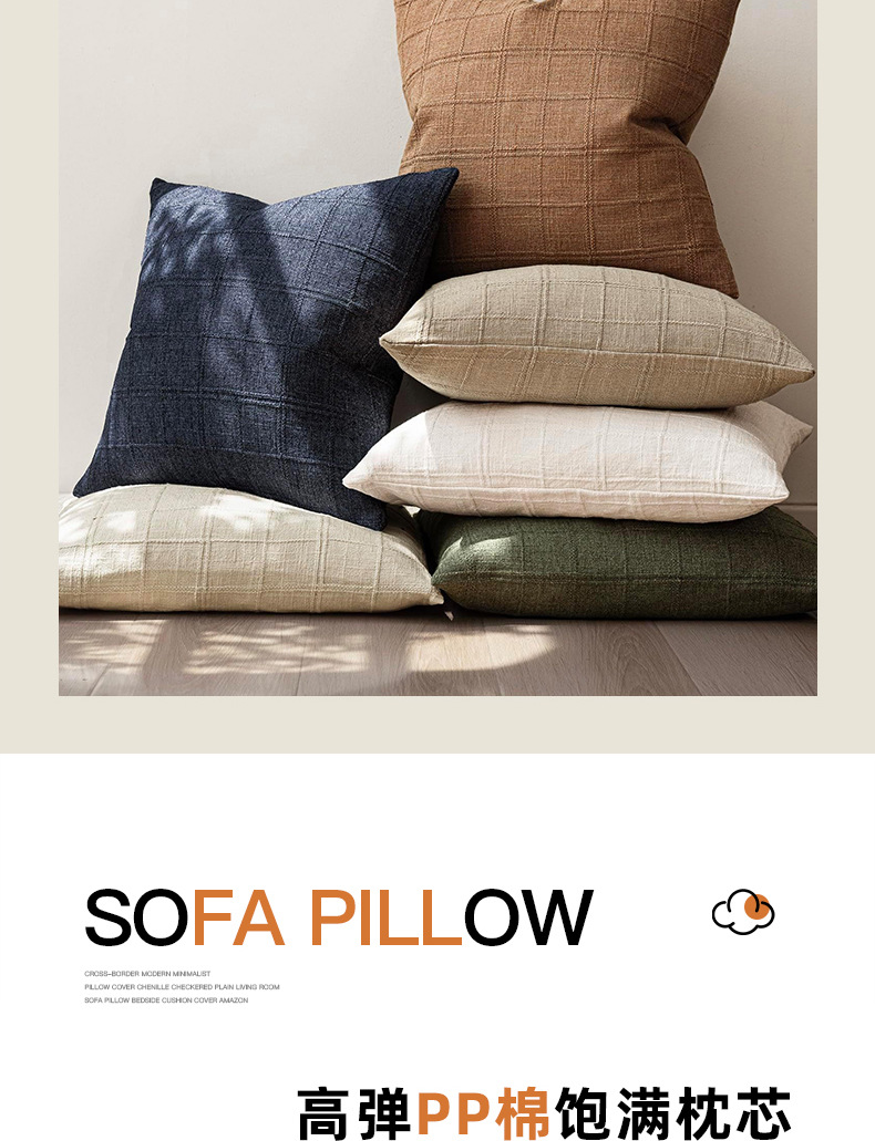 Funda de cojín de chenilla minimalista moderna transfronteriza, color liso, para sofá de sala de estar, cojín de cabecera de cama, Amazon