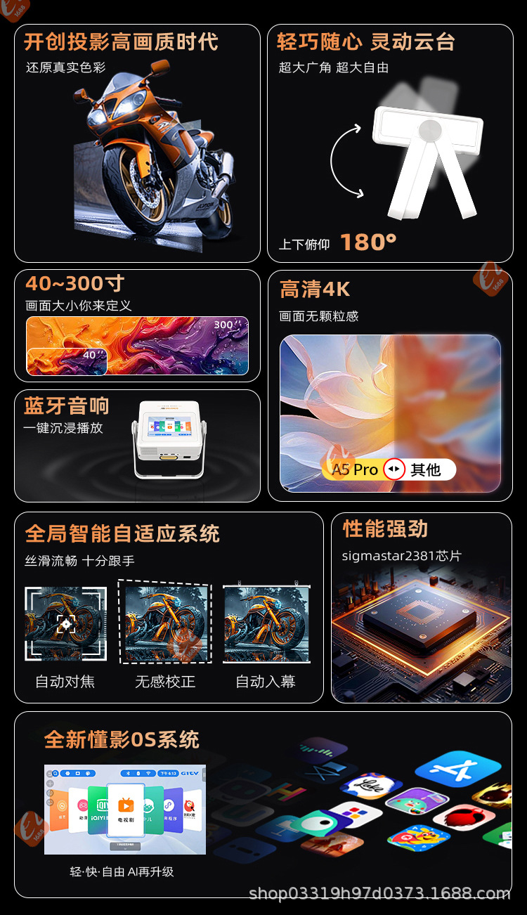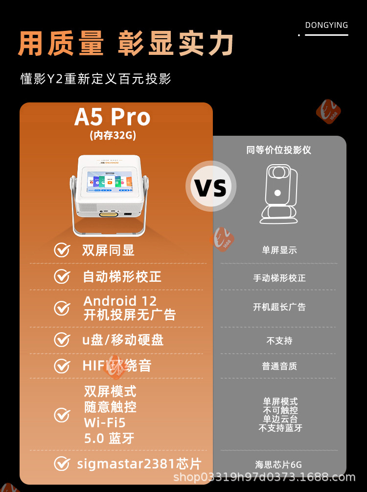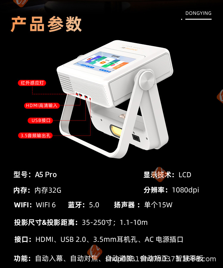 Pantalla dual y fuente de fábrica de pantalla dual 2025 nuevo proyector A5PRO proyector táctil de ultra alta definición para el hogar