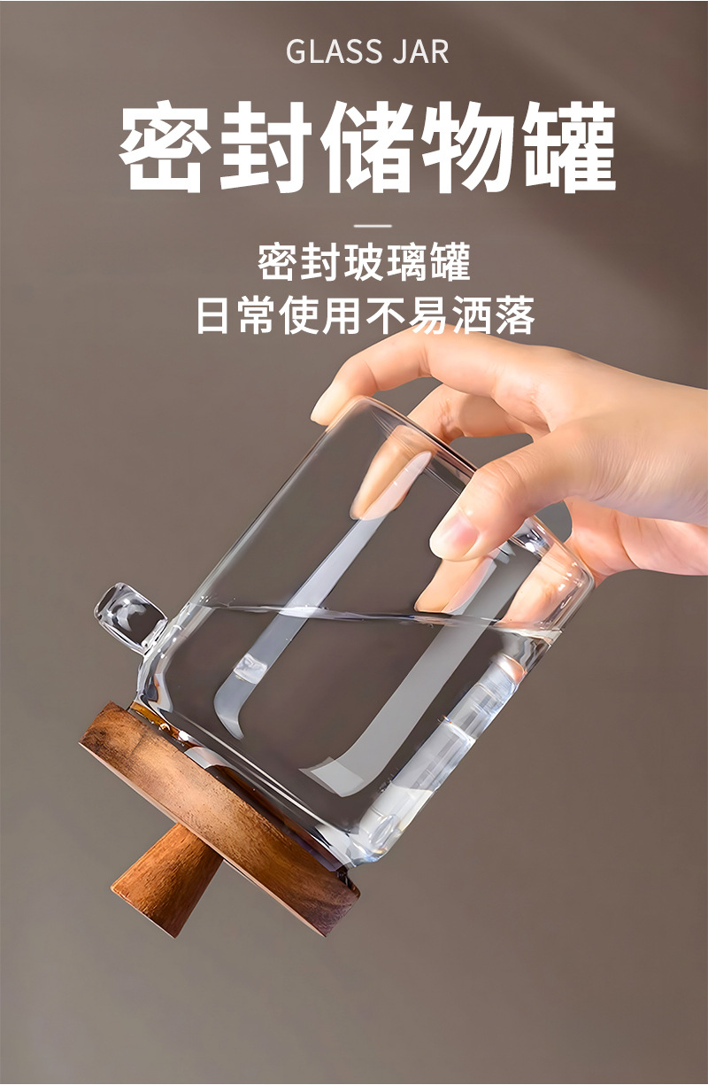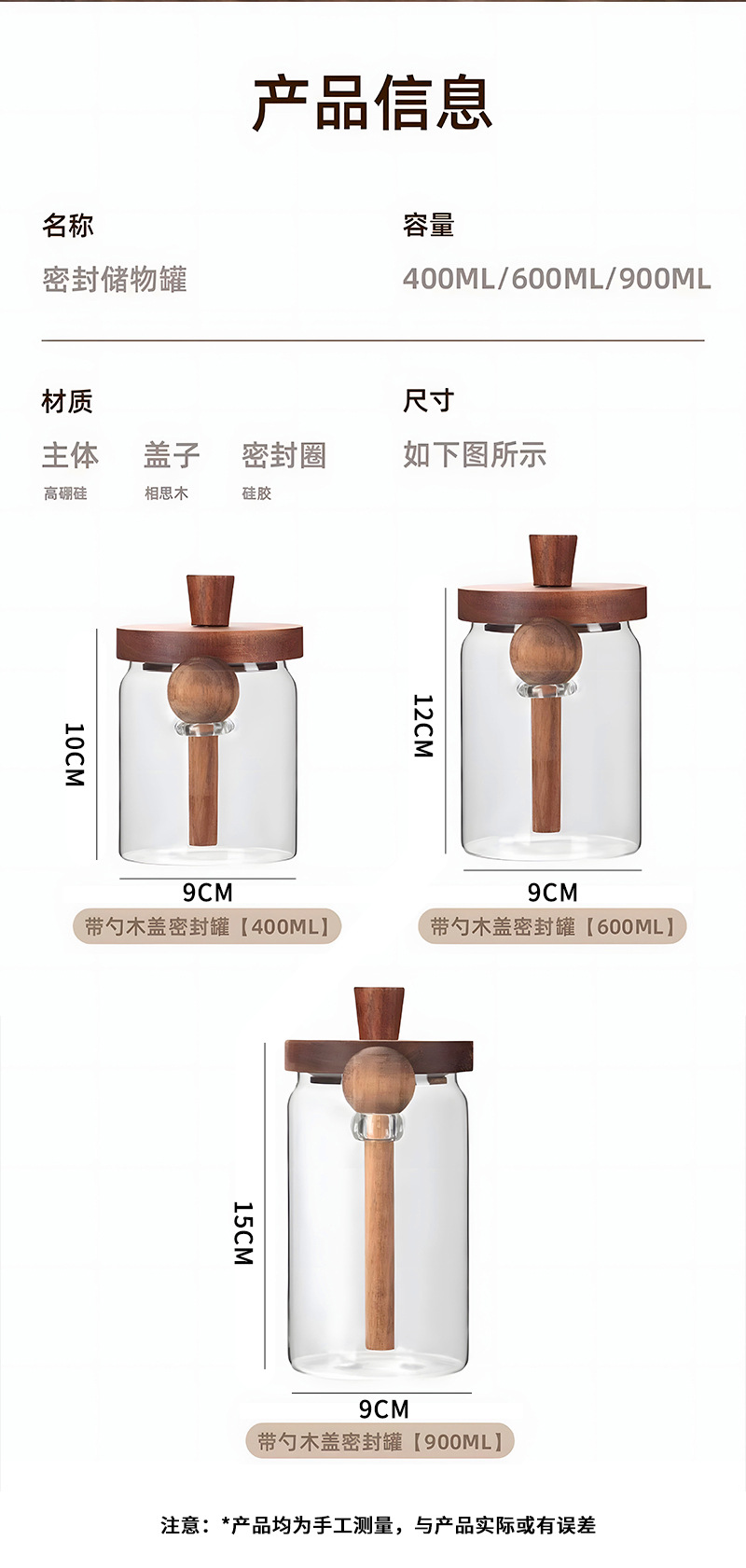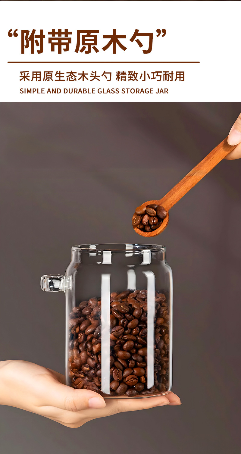 Tarro sellado de vidrio Tarro transfronterizo Tarro de té Tarro de vidrio con borosilicato Tarro de almacenamiento de cocina con tapa Tarro de almacenamiento con cuchara