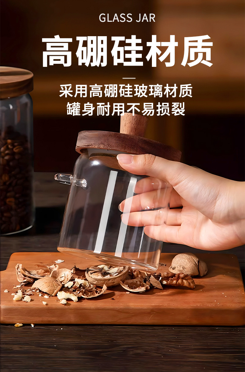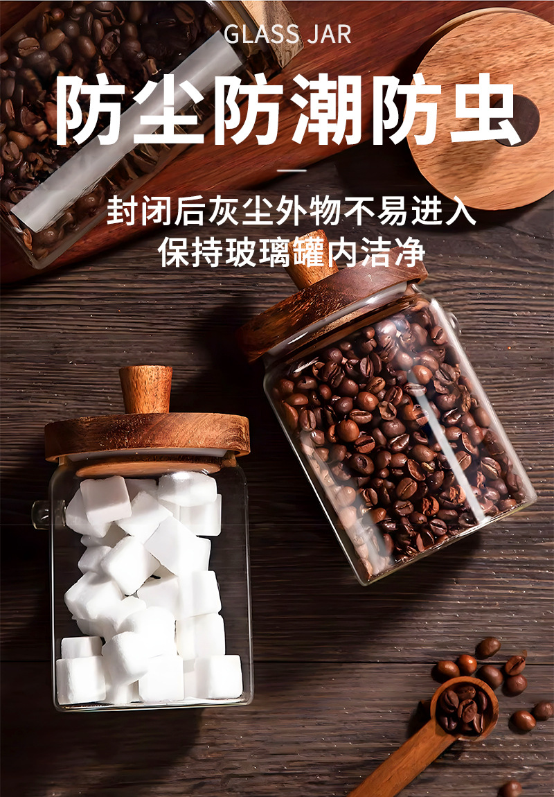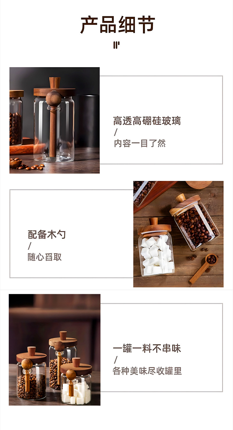 Tarro sellado de vidrio Tarro transfronterizo Tarro de té Tarro de vidrio con borosilicato Tarro de almacenamiento de cocina con tapa Tarro de almacenamiento con cuchara