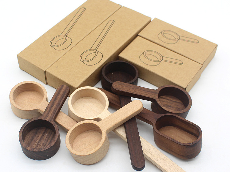 Cuchara de café de madera cuchara de granos de café cuchara de nuez negra cuchara de leche en polvo cuchara de medición