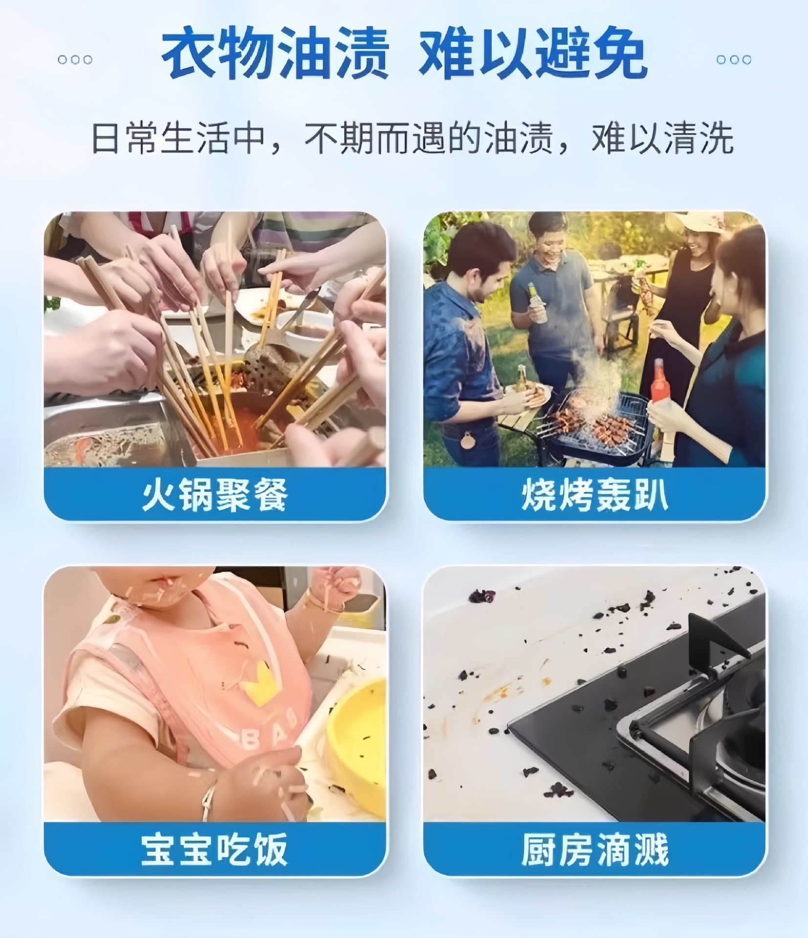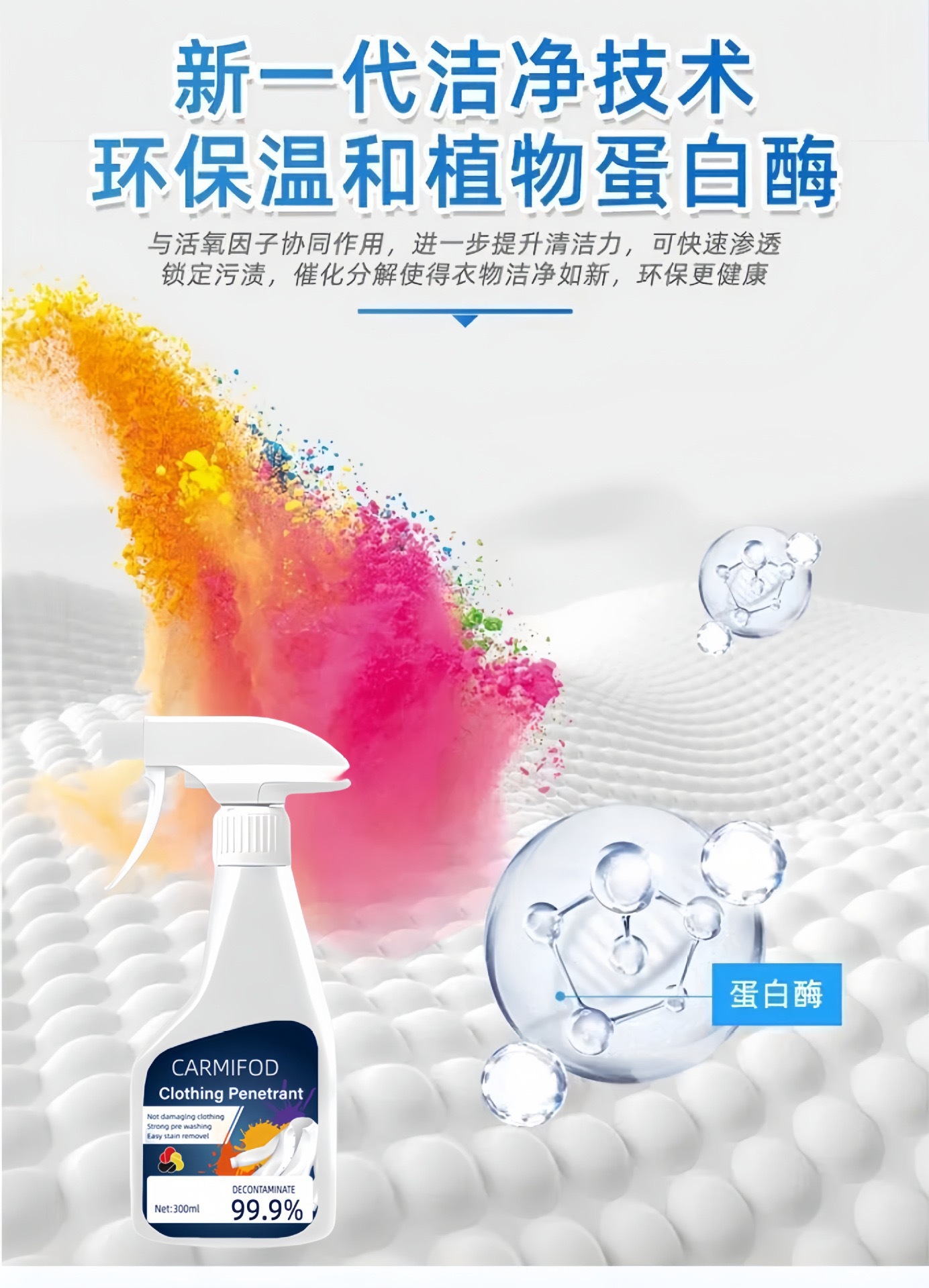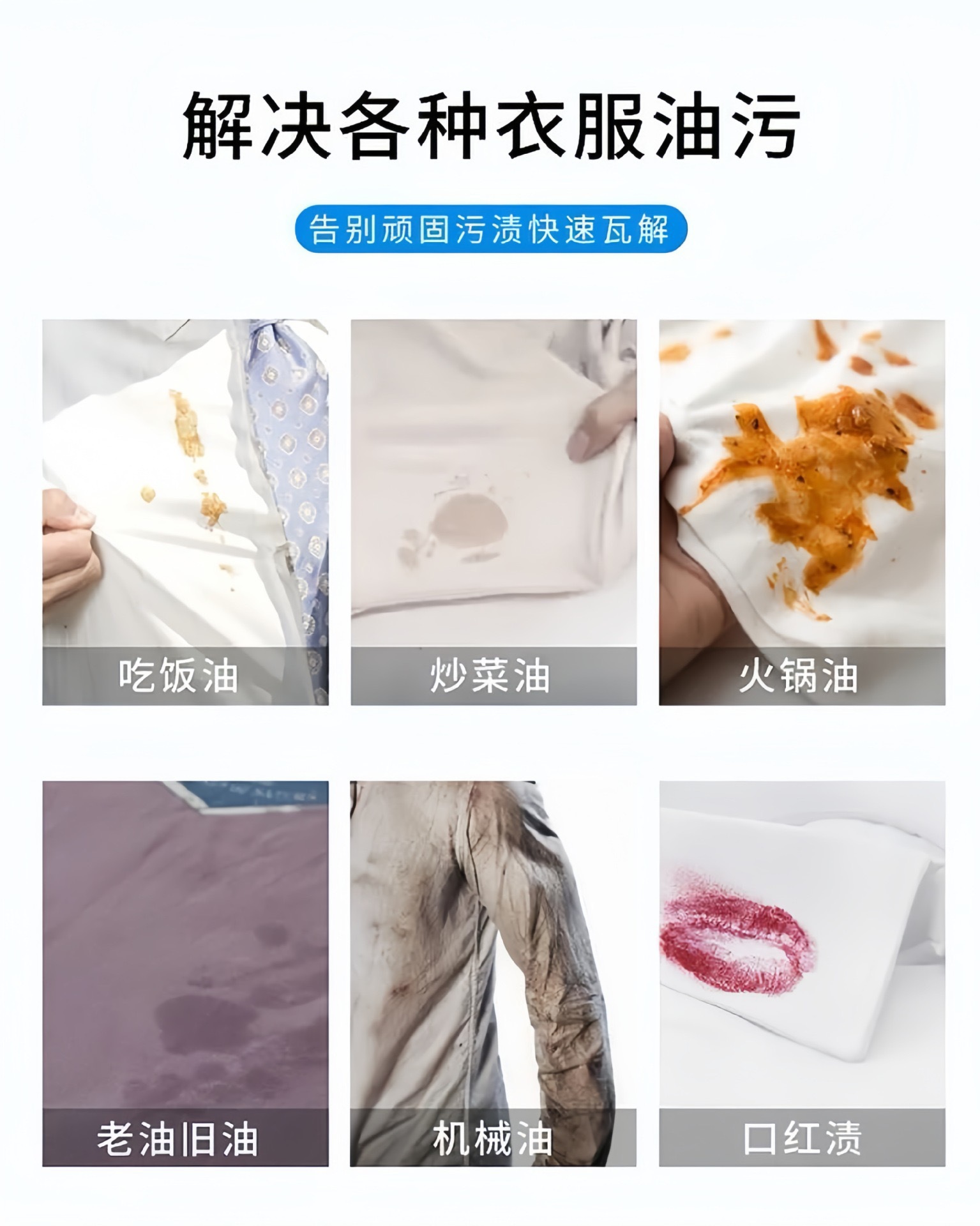 Agente quitamanchas de ropa de venta directa de fábrica, detergente de limpieza con enzimas biológicas, quitamanchas de ropa, herramienta mágica para limpiar manchas de aceite.