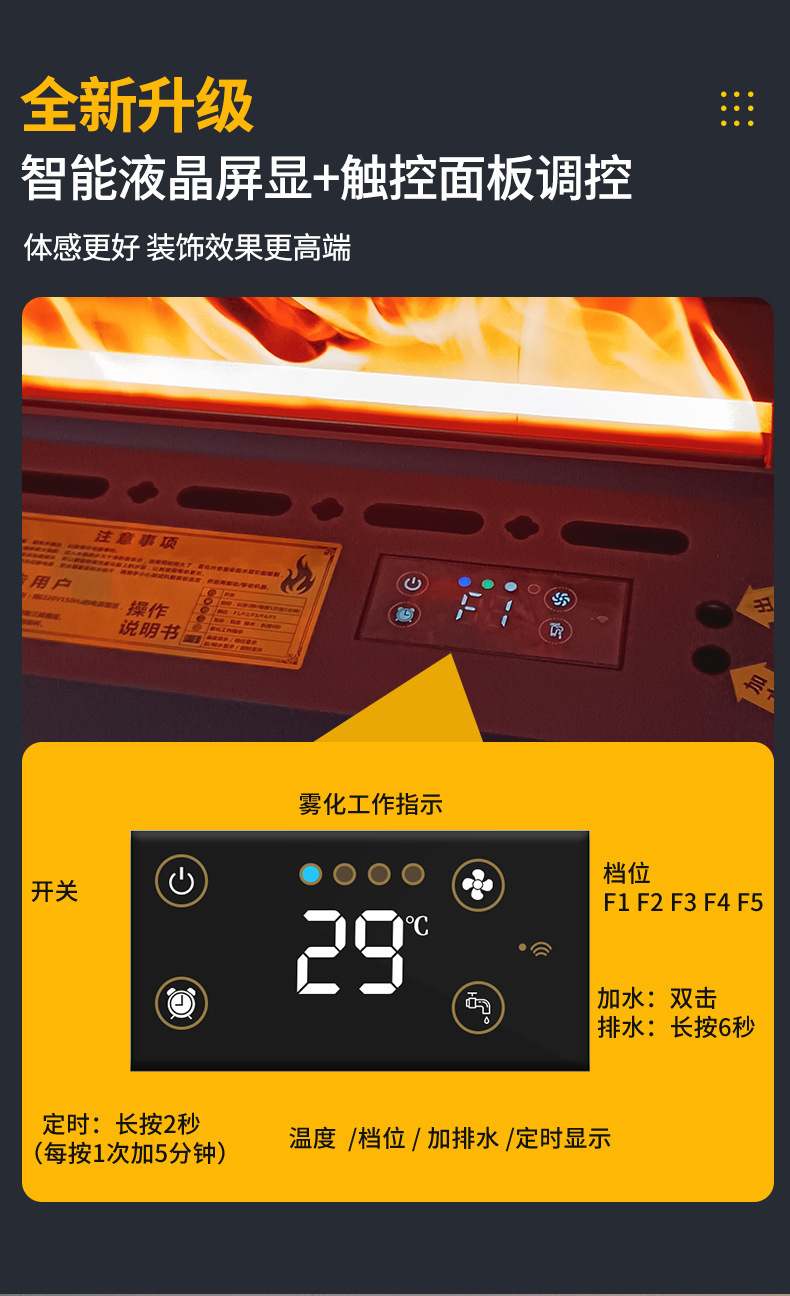 multicolor sala de estar porche 3D chimenea electrónica simulación de llama hogar pared de fondo calefacción inteligente humidificador de chimenea
