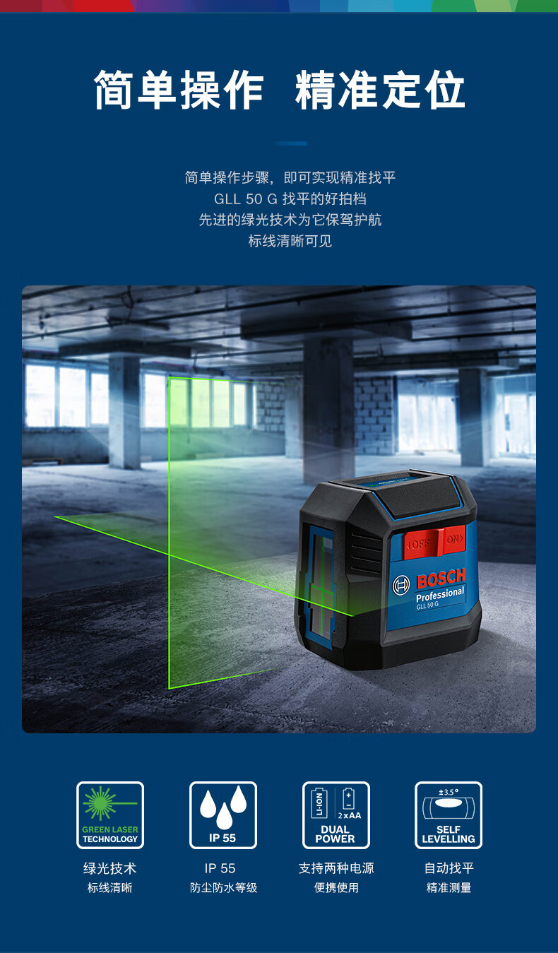Bosch (BOSCH)GLL 50 G nivel de luz verde de dos líneas nivel de marcado láser profesional