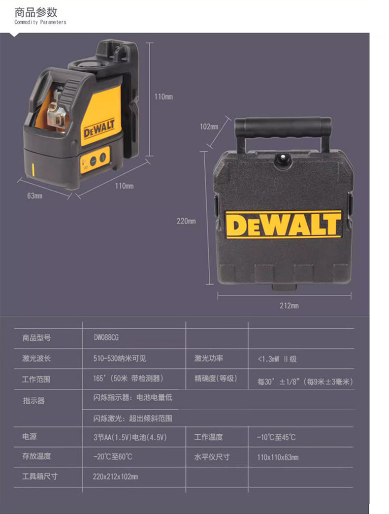 Medidor de nivel Dewei Luz verde Luz fuerte Láser cruzado Medidor de nivel infrarrojo de alta precisión DW088CG/DW089LG