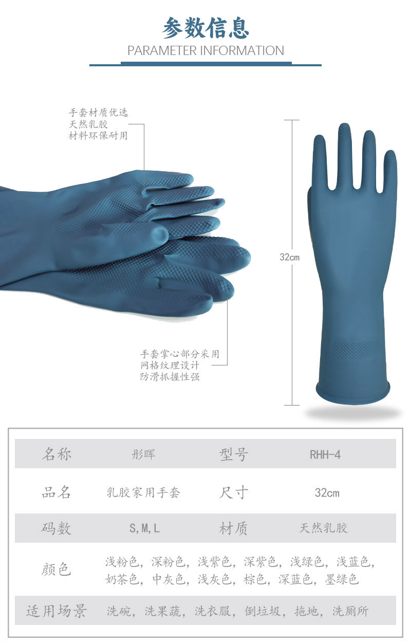 Desarrolle guantes de estilo regular para el hogar de látex de 32cm para lavar los platos en otoño e invierno, limpieza de las tareas del hogar, guantes de cocina de goma de limpieza
