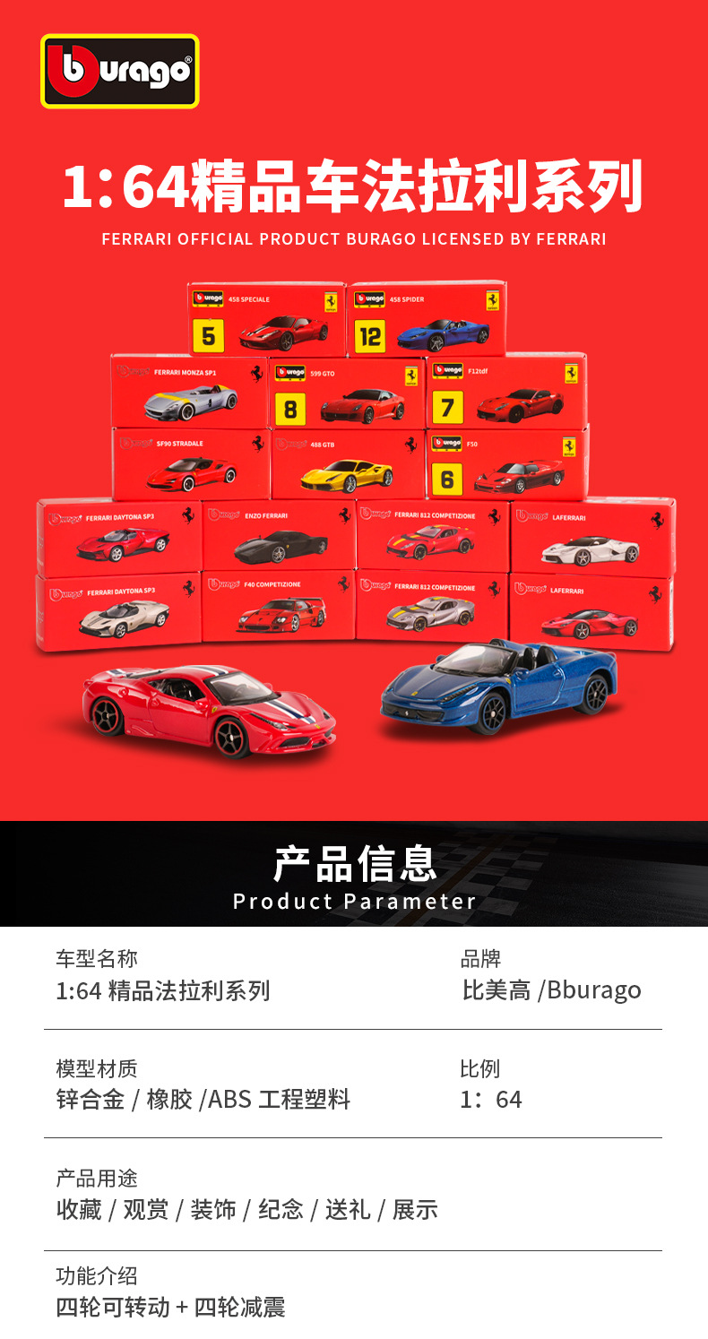 | Colores | Ferrari SP3 rojo,Ferrari SP3 blanco,Ferrari 812 Rojo,Ferrari 812 gris,Ferrari SF90 rojo (blanco gula),Ferrari SF90 Rojo,Ferrari Rafa-Rojo,Ferrari Rafa-Blanco,Ferrari 599GTO-Rojo,Ferrari F50-Rojo,Ferrari F40-Rojo,Ferrari 458Spider-Azul,Ferrari 458Speciale-Rojo,Ferrari 488GTB-Amarillo,Ferrari F12tdf-Rojo,Ferrari Enzo-Negro,Ferrari SP1 gris plata |
