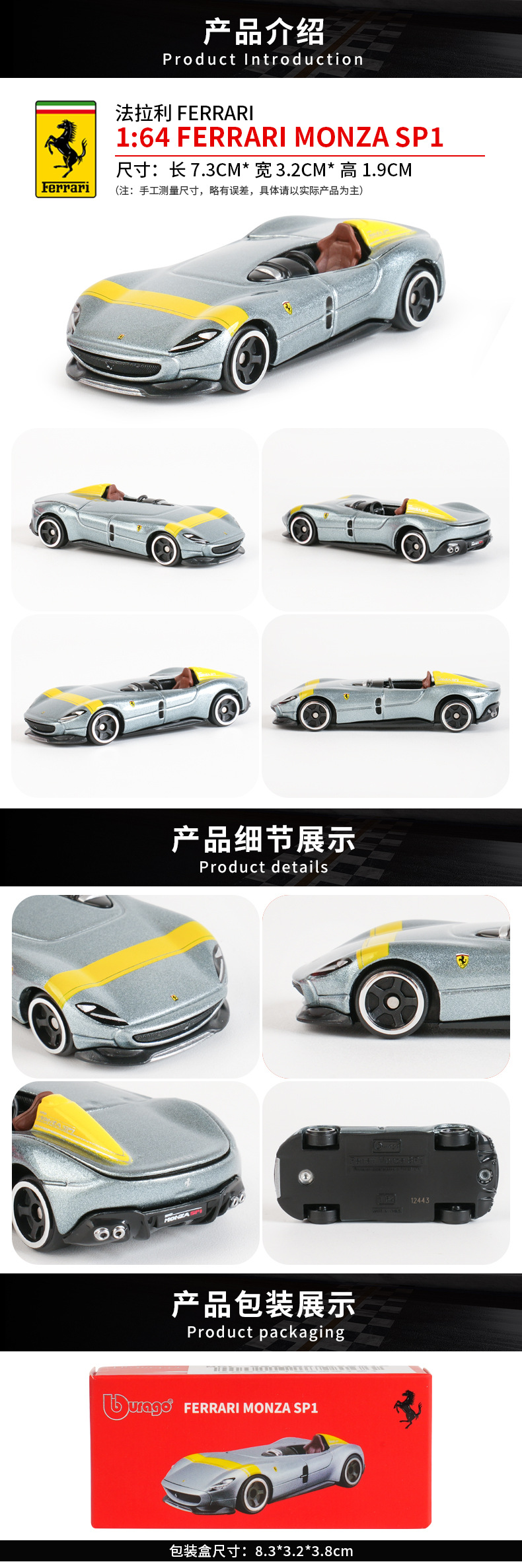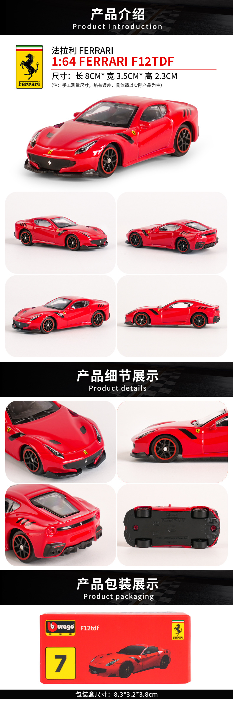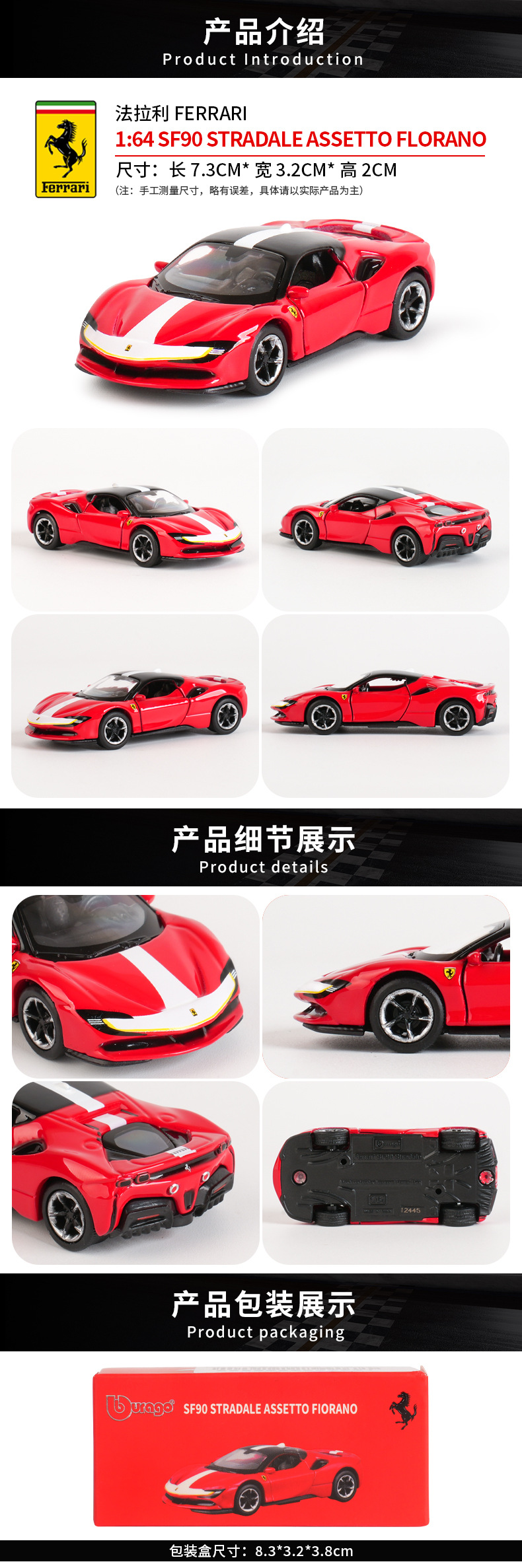 1:64 Ferrari modelo de coche de pequeña escala más alto que Estados Unidos SF90 SP1 SP3 812 modelo de coche de aleación de simulación
