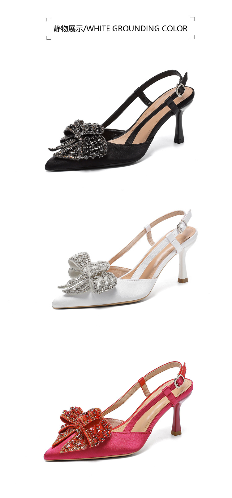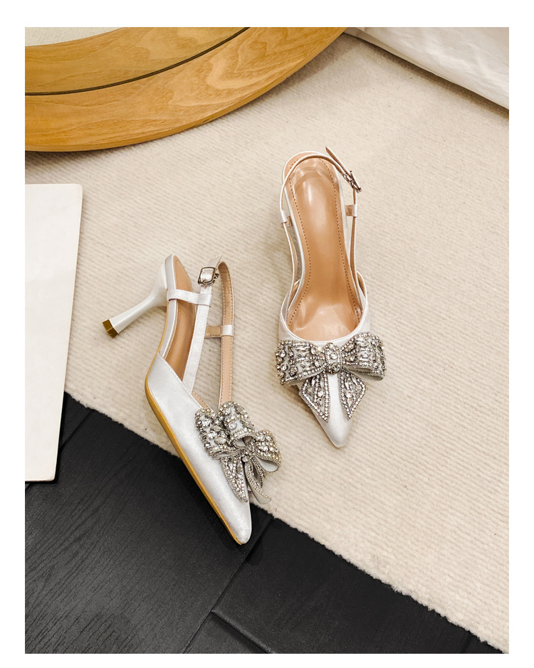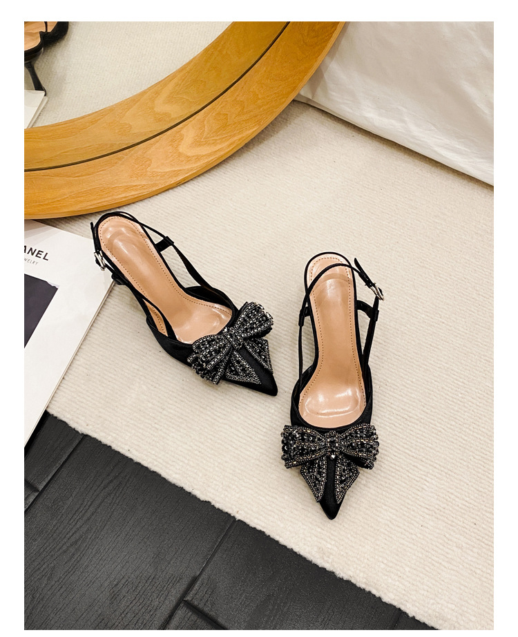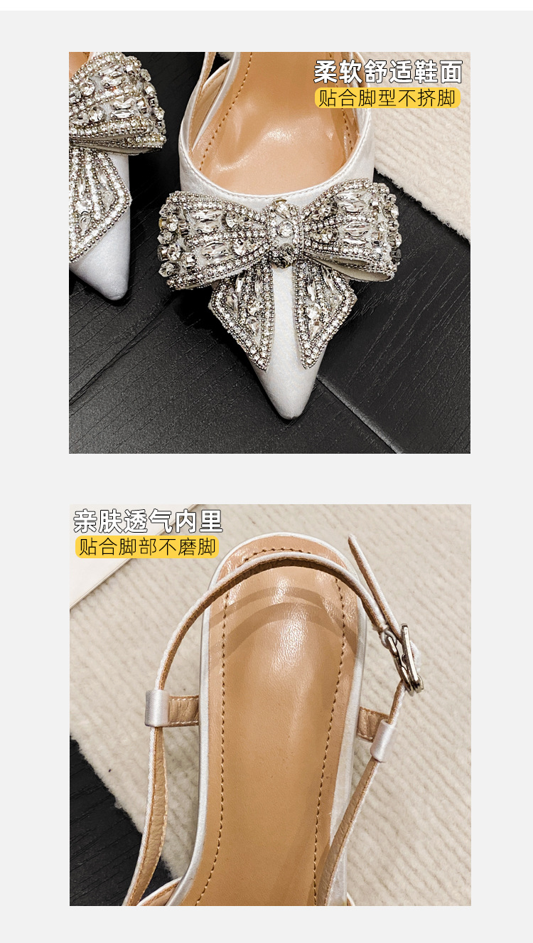 Otoño de 2025 nuevo estilo de moda sexy versátil arco de diamante puntiagudo bolsas delanteras detrás de zapatos de boda vacíos 183 - 1