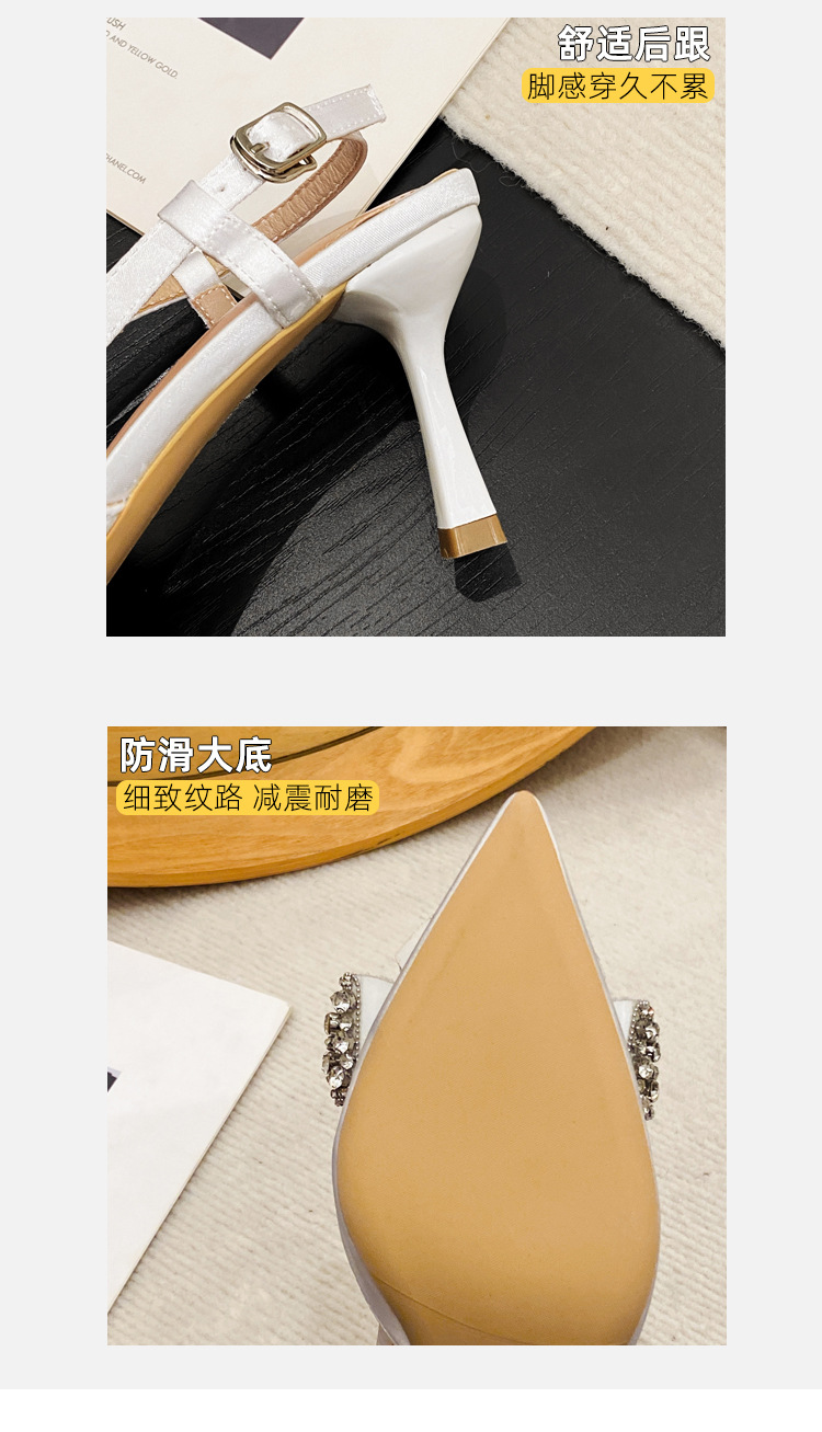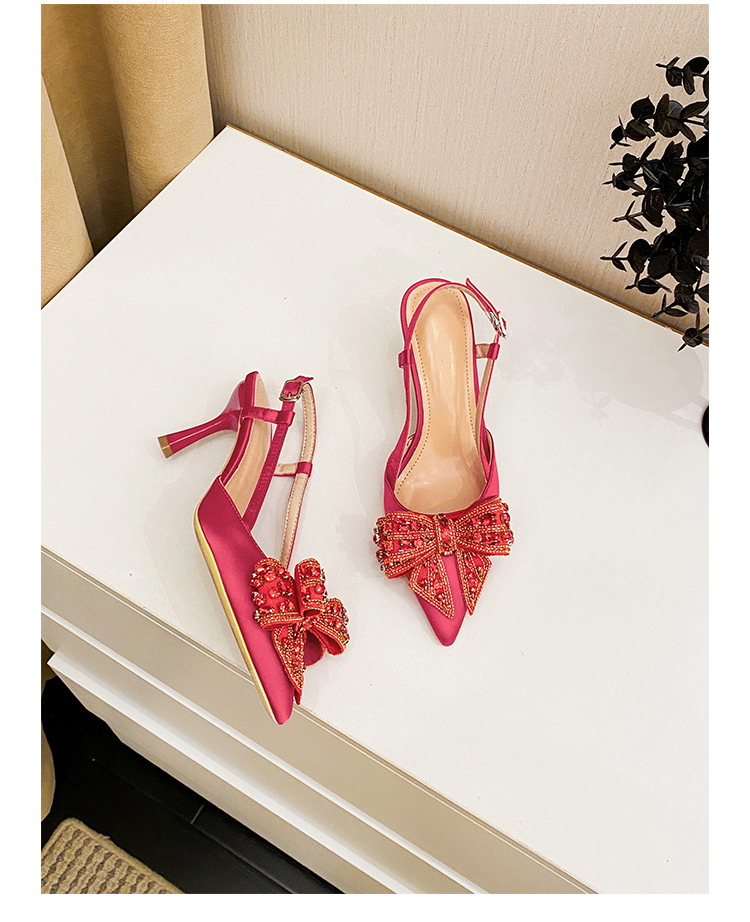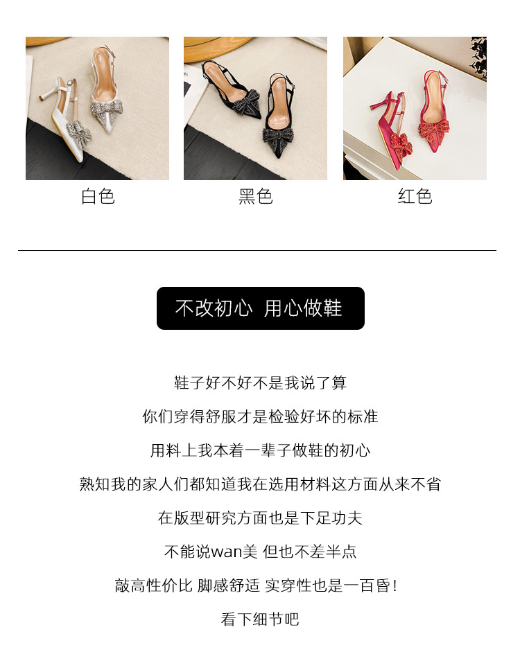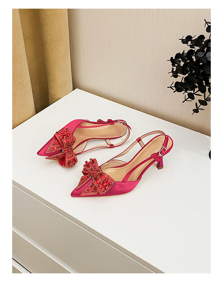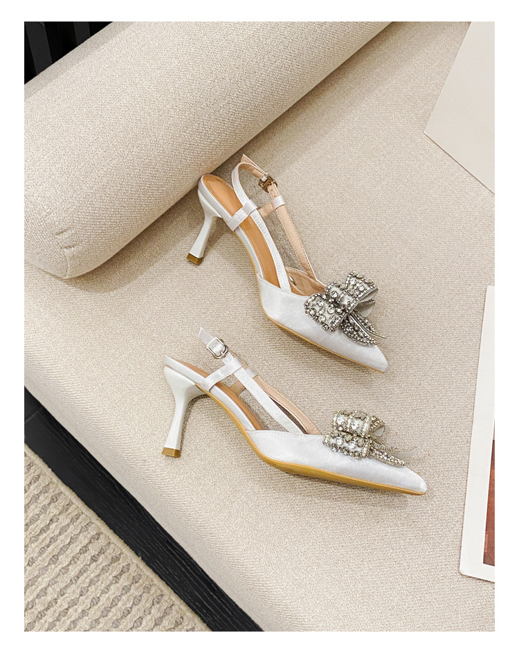 Otoño de 2025 nuevo estilo de moda sexy versátil arco de diamante puntiagudo bolsas delanteras detrás de zapatos de boda vacíos 183 - 1