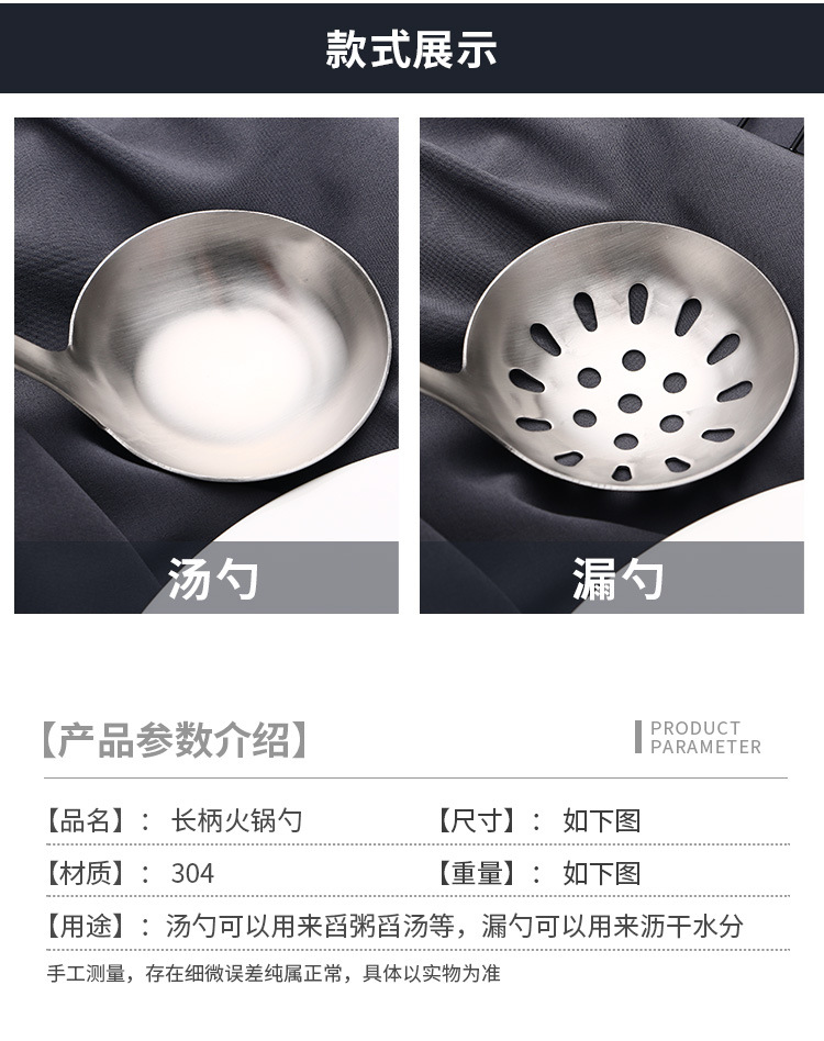 Cuchara de sopa de olla caliente de acero inoxidable 304, colador de cáscara de sopa, lijado, lijado, mil ollas, olla pequeña, herramienta de olla caliente