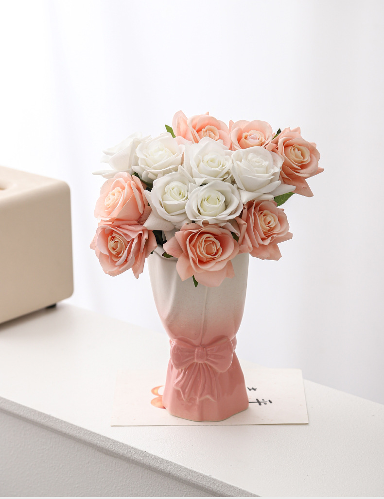 Flores europeas de mano decoración decorativa sala de estar artística flor decorativa rosa hidropónica decoración de mesa