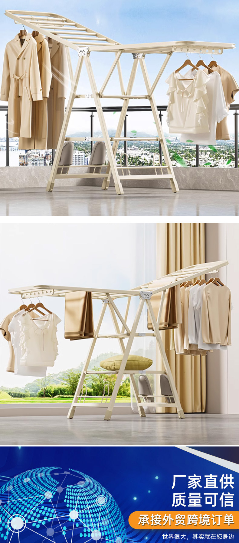 piso plegable percha de ropa balcón doméstico barra de secado percha de ropa doméstica al aire libre percha de ropa interior percha de colcha de bebé