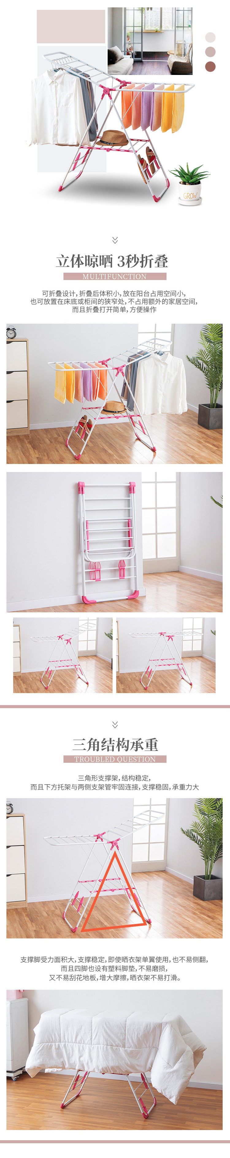 Acero inoxidable percha de ropa piso plegable balcón interior edredón percha de ropa para bebés percha de ropa aerofólio toalla de ventana