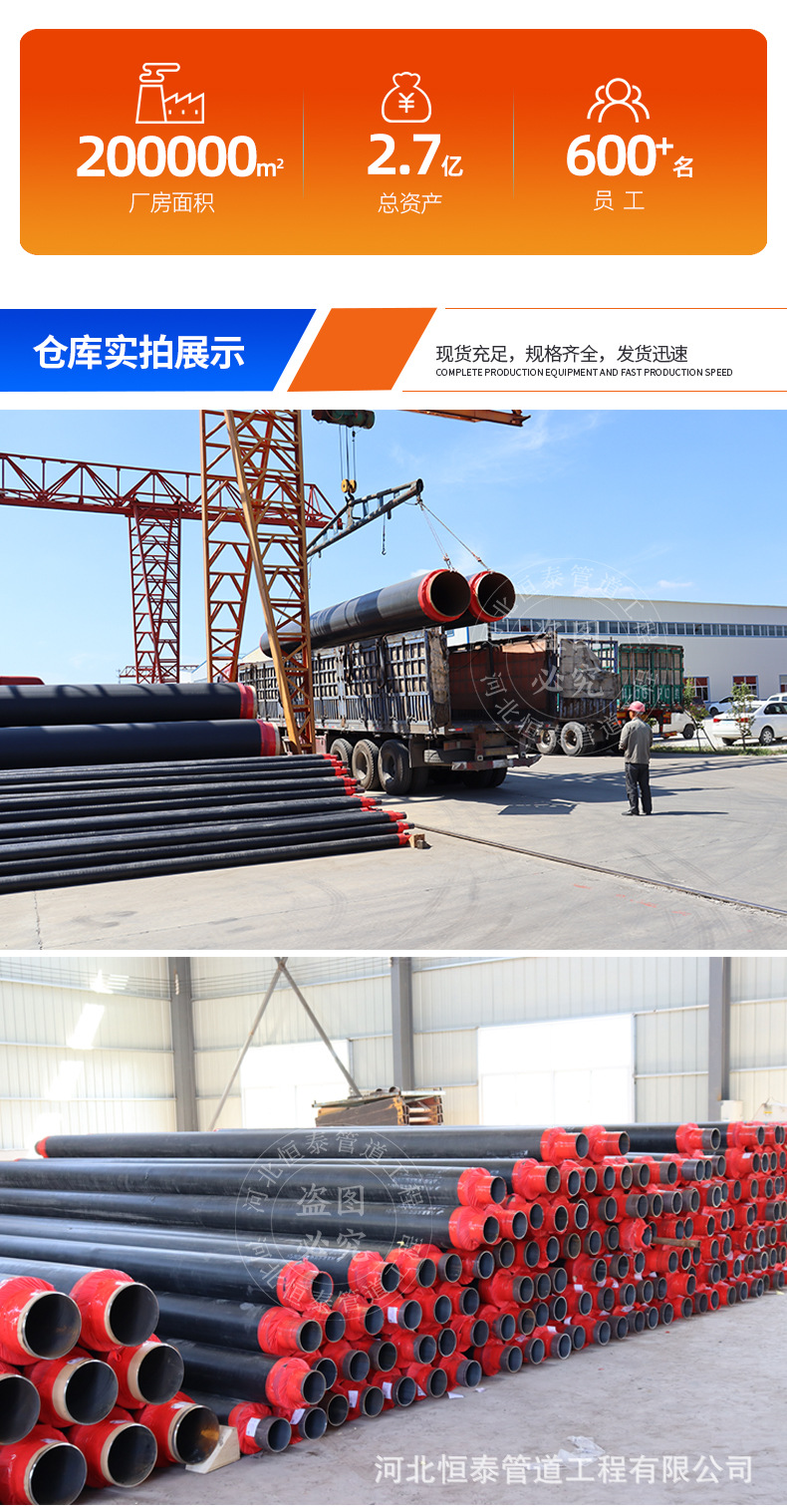 Tubo de aislamiento térmico prefabricado de poliuretano enterrado directo chaqueta negra tubo de aislamiento térmico enterrado directo calefacción de la comunidad Q235B tubo de acero aislante térmico