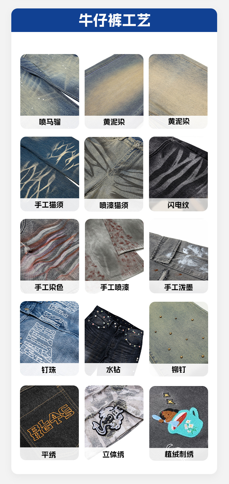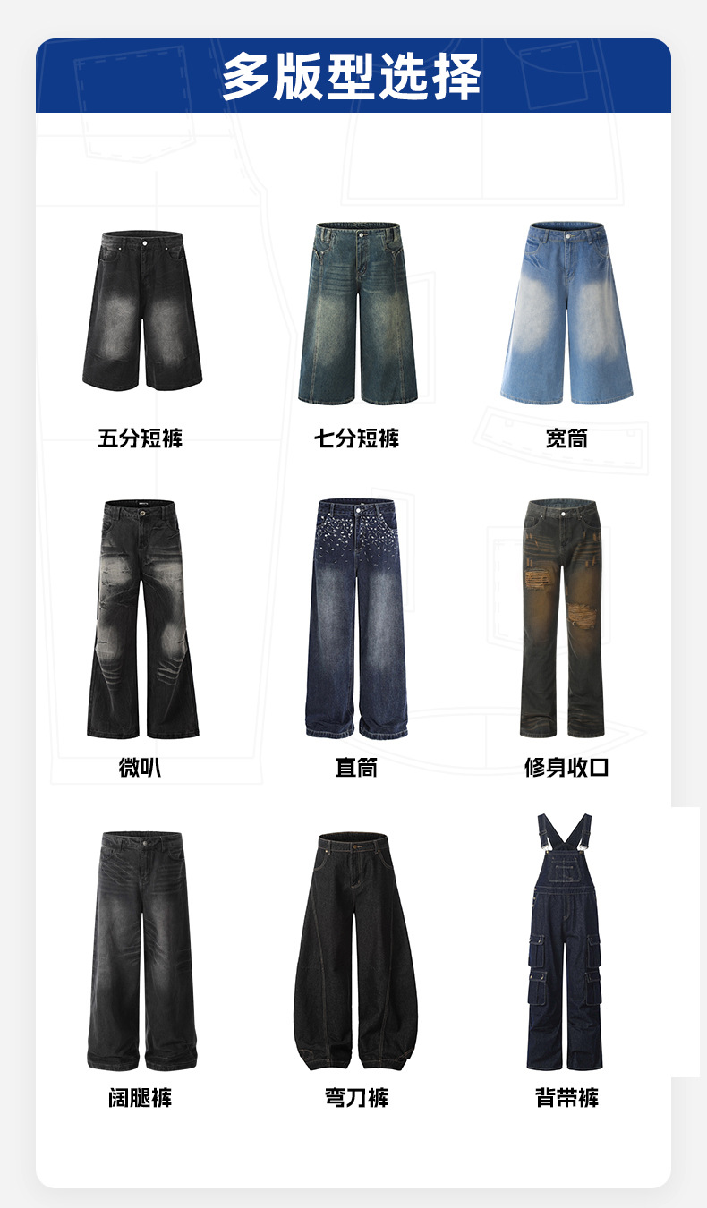 Jeans personalizados pantalones de comercio exterior transfronterizo para dibujar muestras personalizadas OEM fábrica de prendas de vestir prueba gratuita
