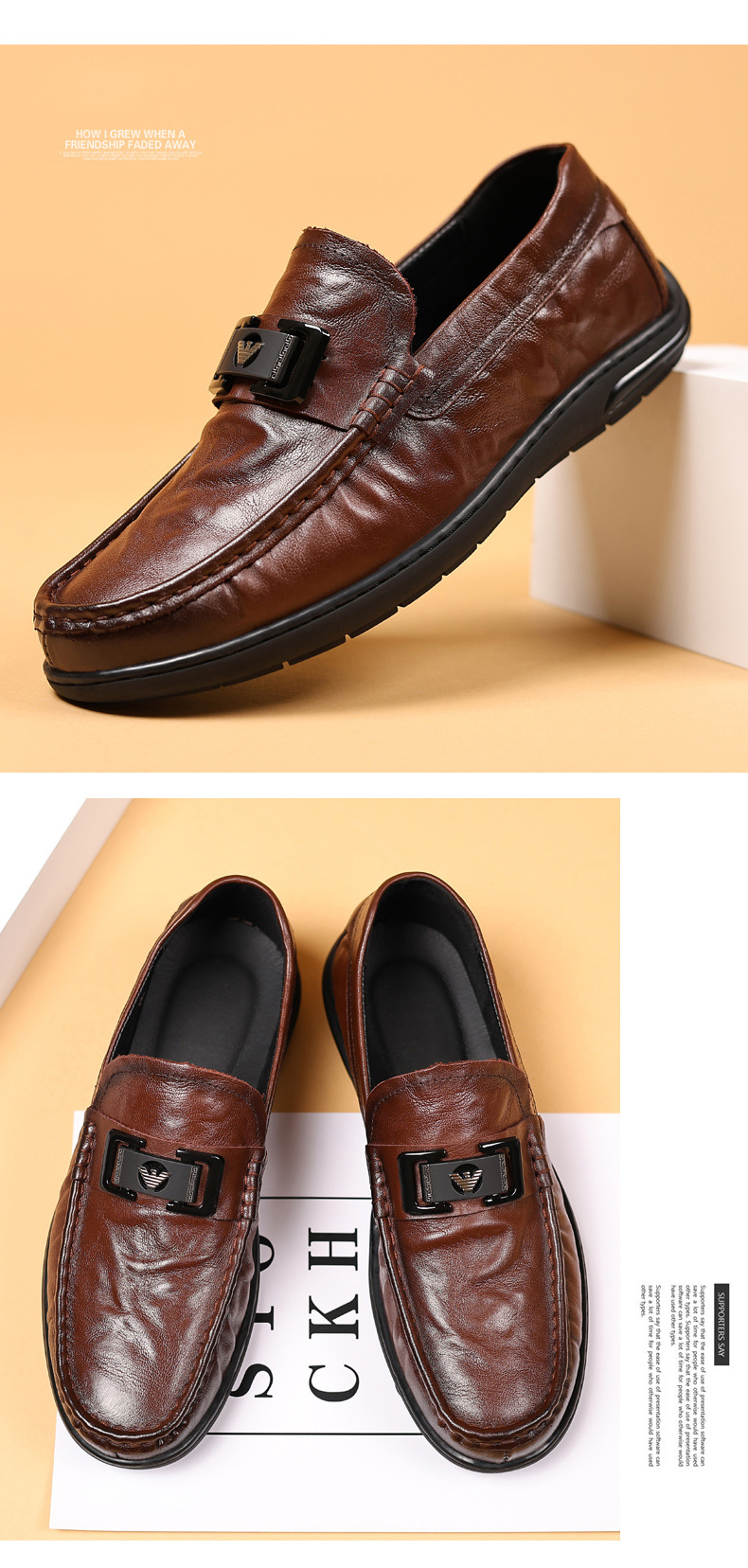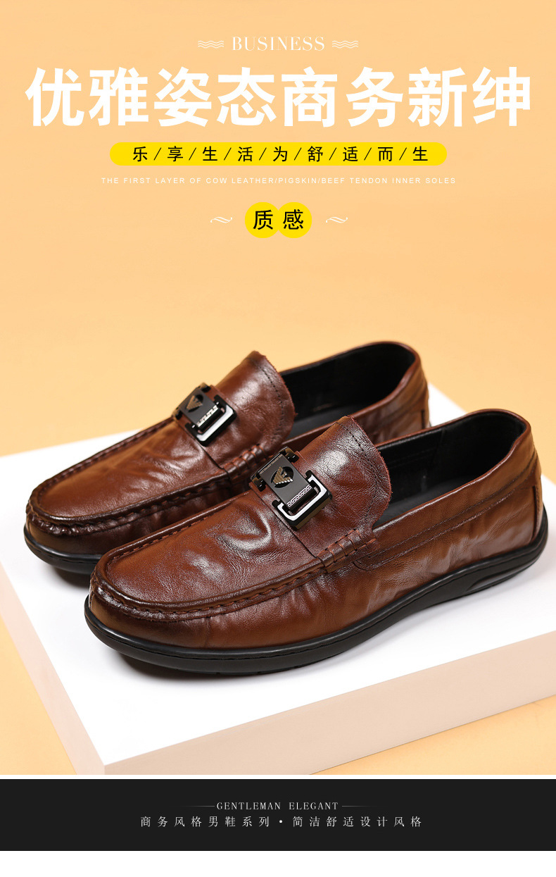 2024 primera capa de piel de vaca zapatos de guisantes para hombre zapatos de cuero Lefu zapatos de cuero casuales para hombre zapatos individuales de alta gama zapatos de hombre de punta redonda