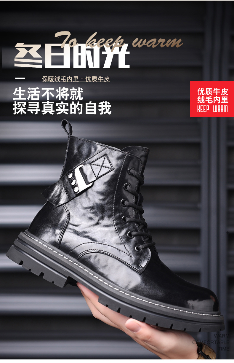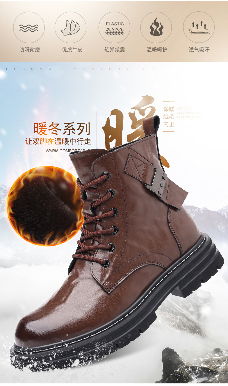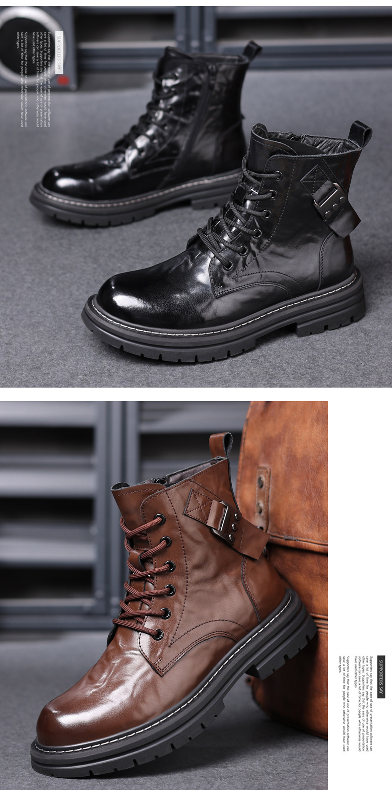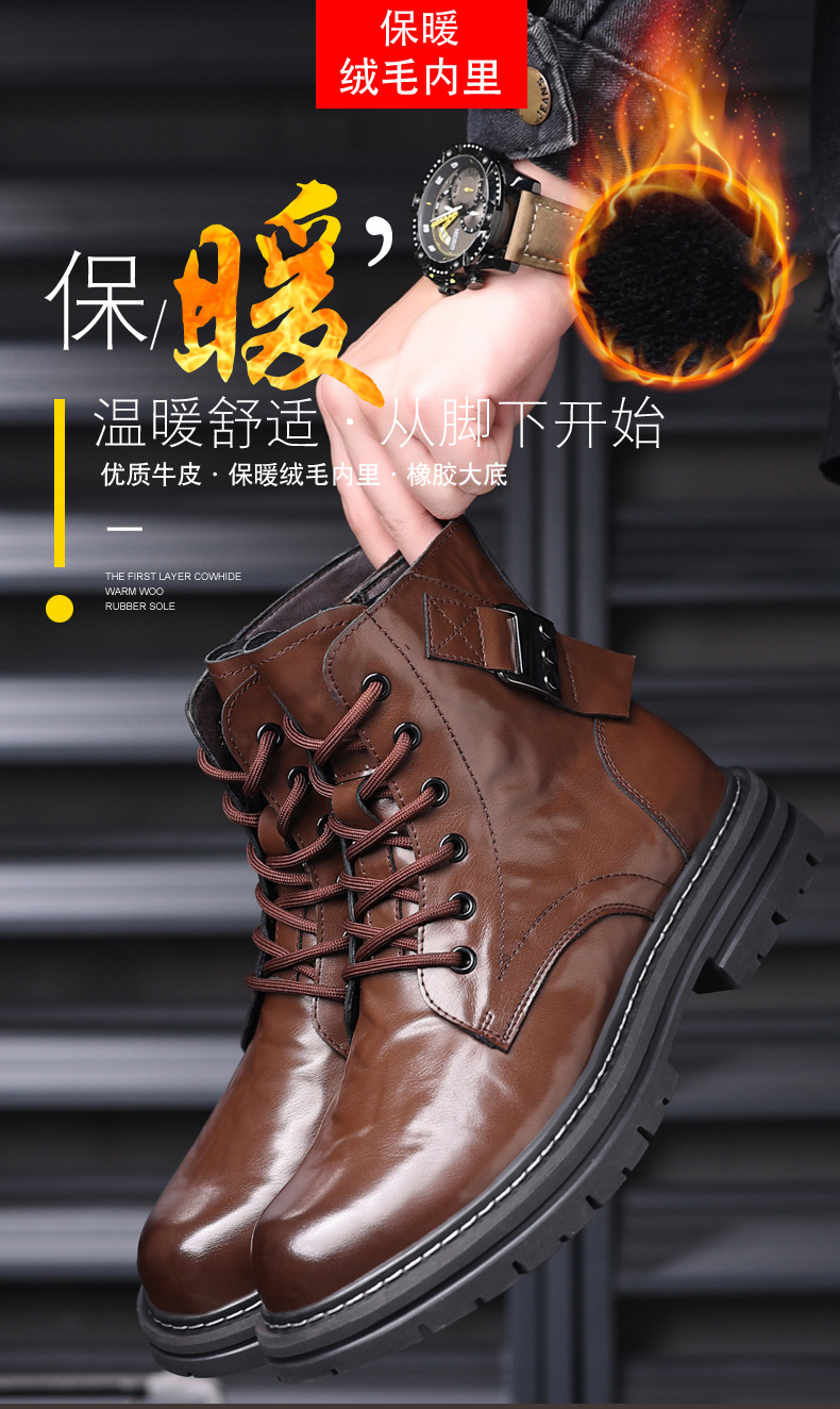Botas Martin de los hombres de cuero genuino botas altas botas de cuero altas botas de los hombres forrados de lana botas calientes botas casuales zapatos de los hombres botas