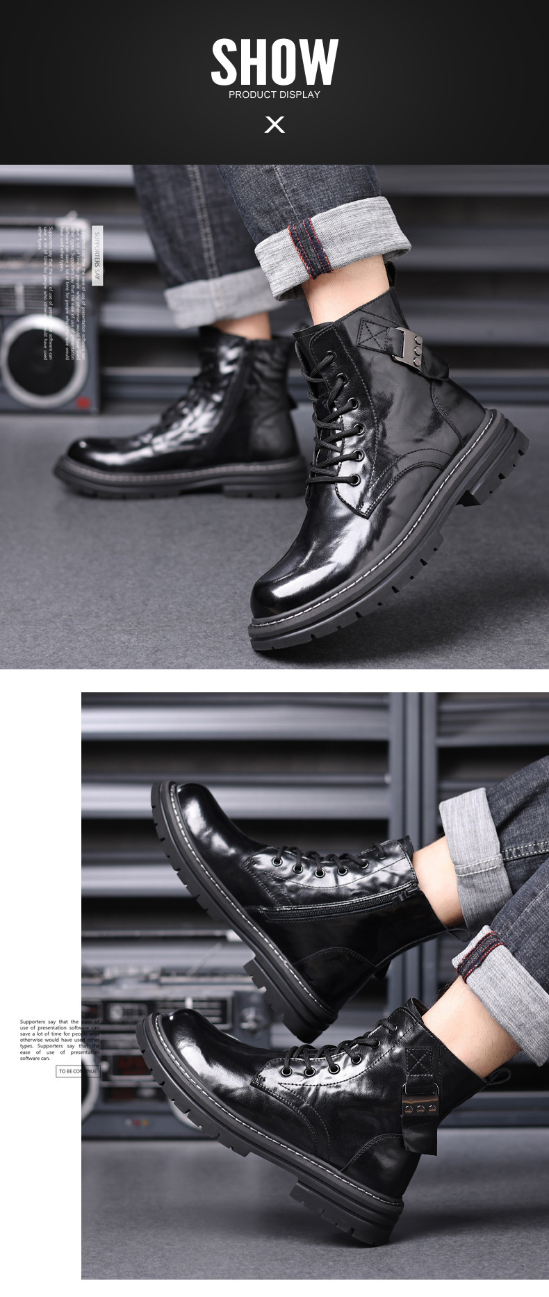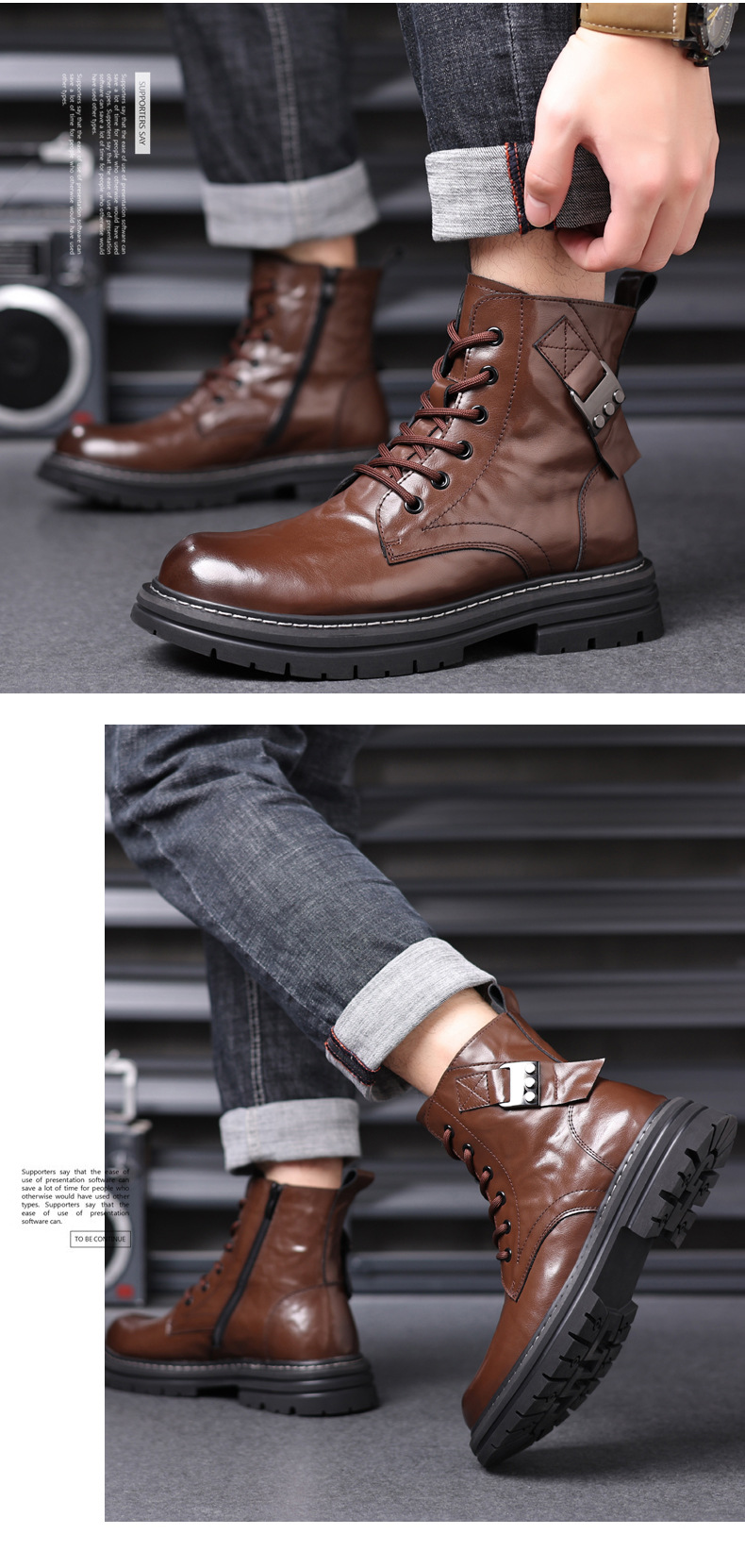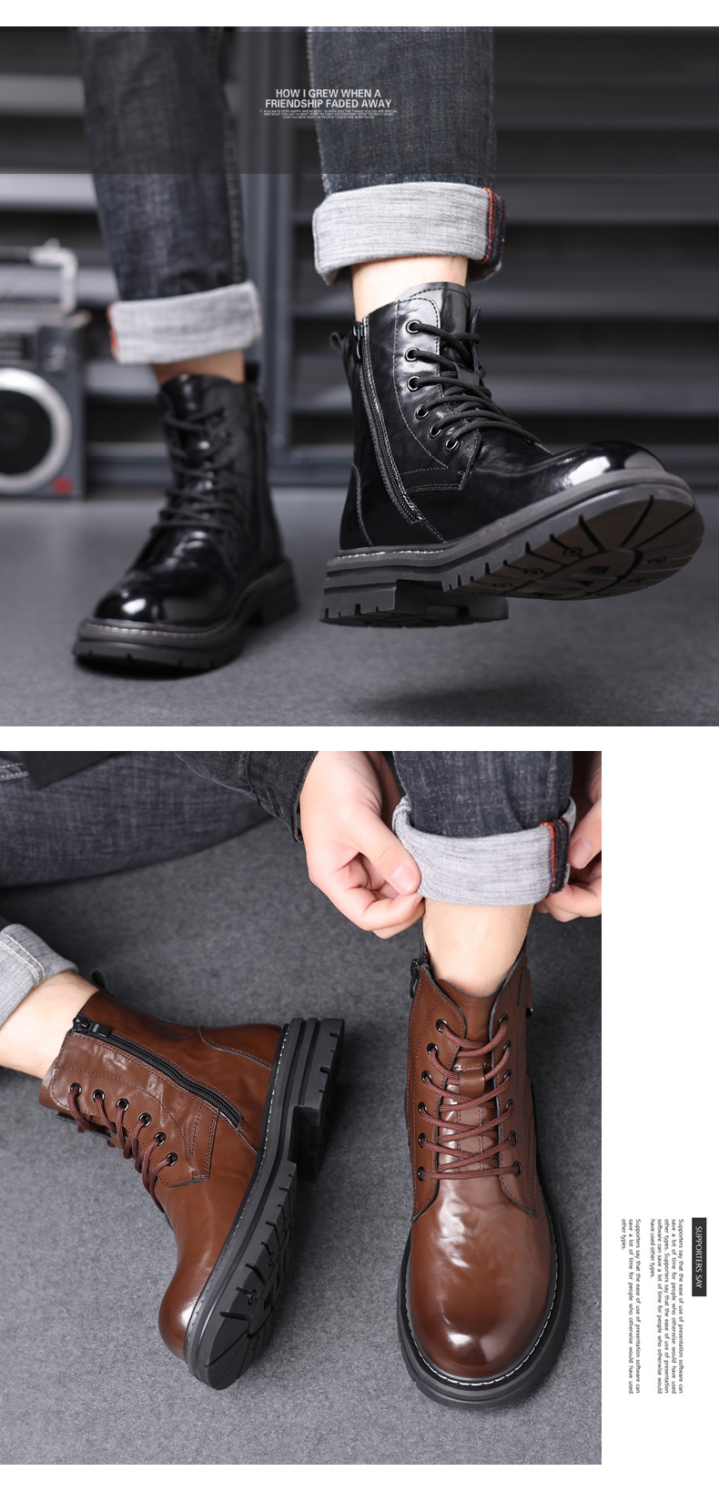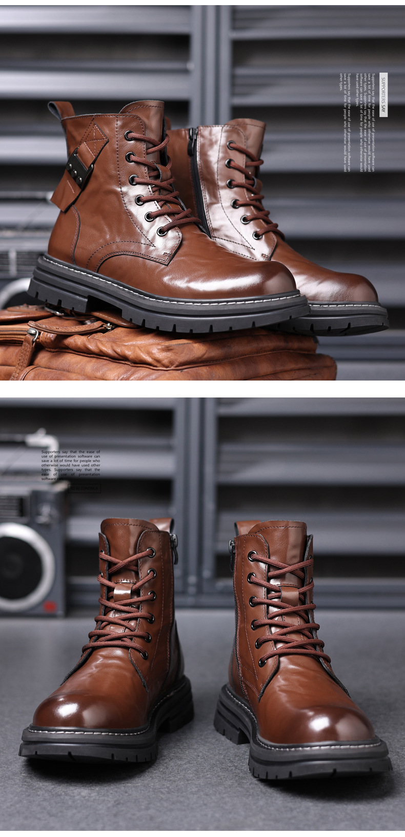 Botas Martin de los hombres de cuero genuino botas altas botas de cuero altas botas de los hombres forrados de lana botas calientes botas casuales zapatos de los hombres botas