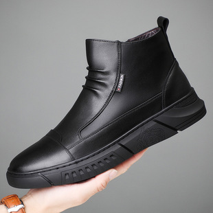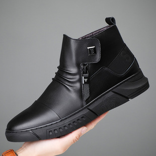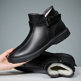 Botas de cuero de lana altas de cuero genuino de invierno zapatos de algodón para hombres Chelsea zapatos de hombre de piel de vaca caliente con forro polar para hombres 45 zapatos de cuero