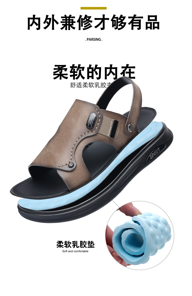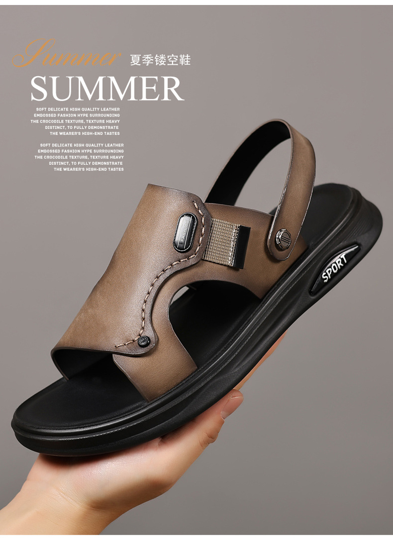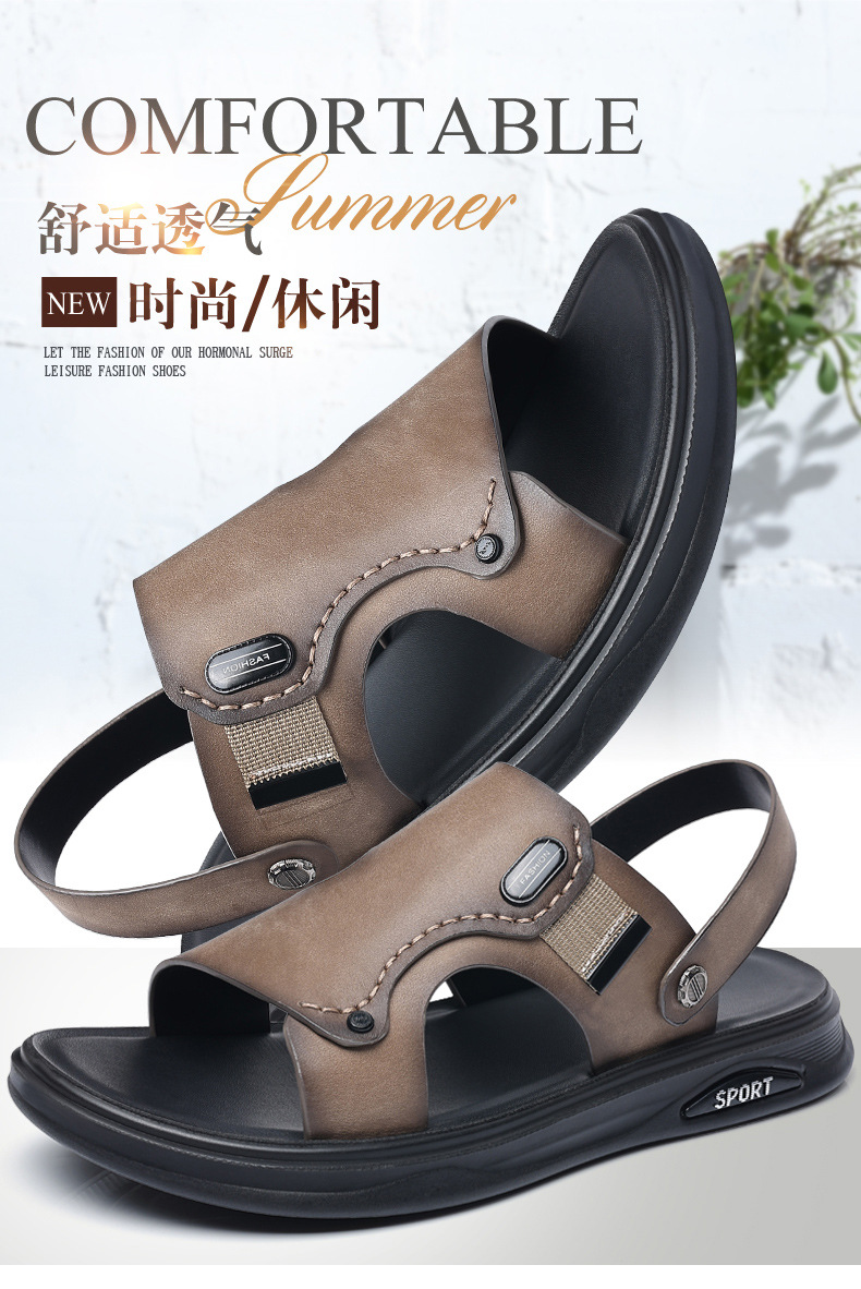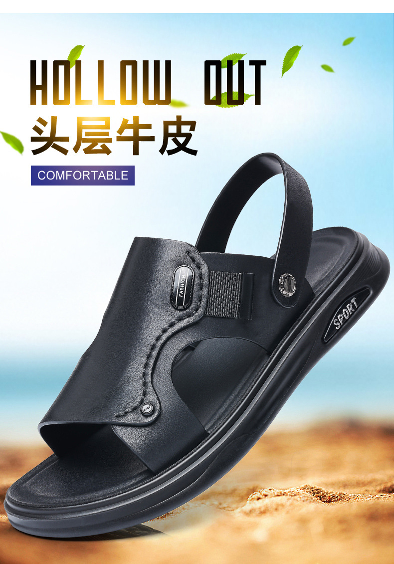 Verano de piel de vaca de cabeza zapatos de playa para hombres sandalias de cuero zapatillas casuales de cuero para hombres zapatillas respirables para hombres