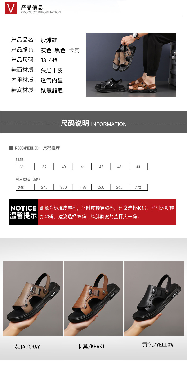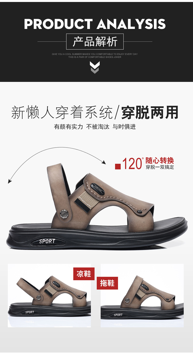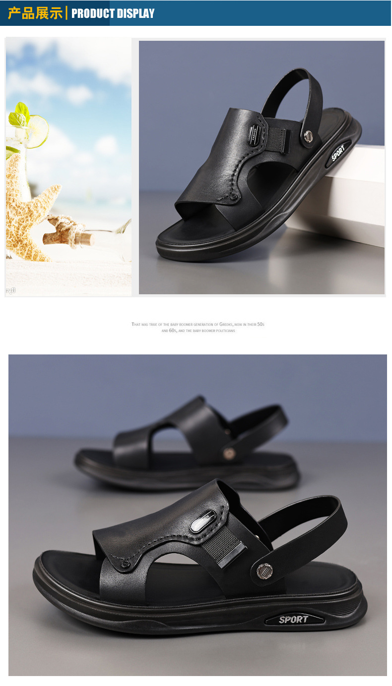 Verano de piel de vaca de cabeza zapatos de playa para hombres sandalias de cuero zapatillas casuales de cuero para hombres zapatillas respirables para hombres