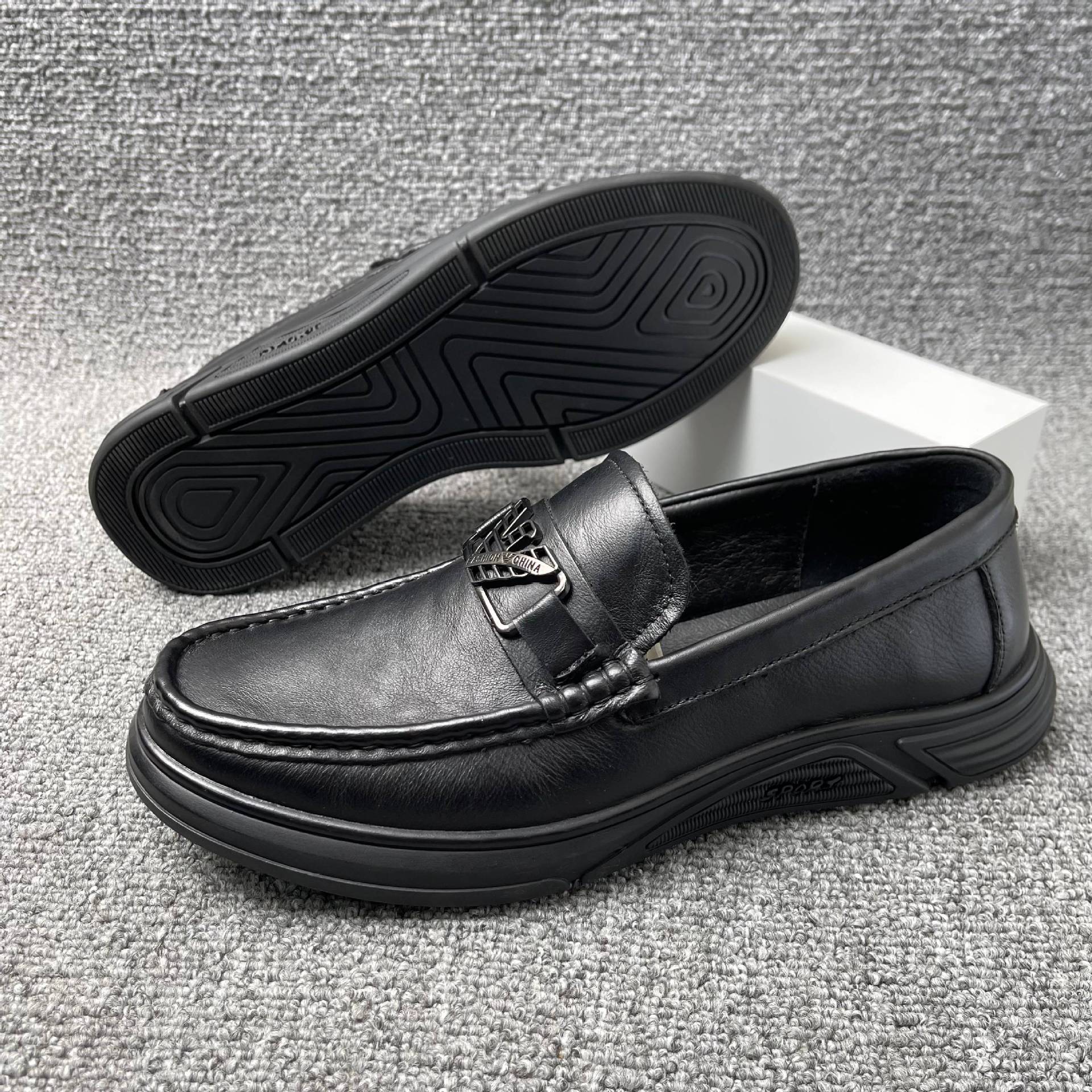 Zapatos de guisantes de hombre de piel de vaca de primera capa, zapatos de cuero casuales de hombre de cuero genuino, zapatos Lofu de mediana edad, zapatos de hombre papá, tratamiento de zapatos