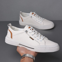 Novedad de verano, zapatos blancos McQueen de primera capa de cuero de vaca para hombre, zapatos informales de cuero genuino, zapatos transpirables para hombre, zapatos planos para hombre