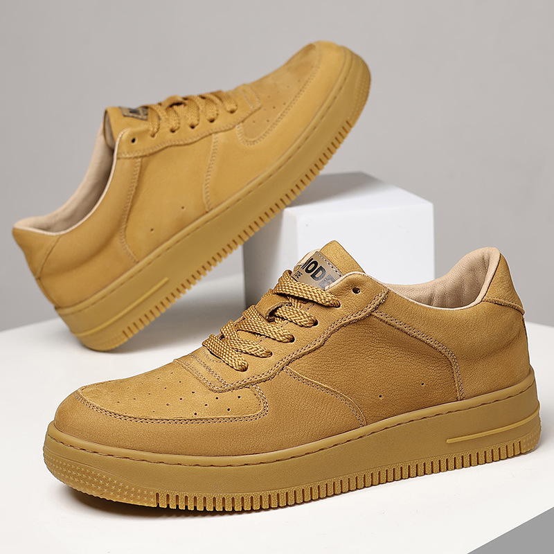 [cuero de vaca] zapatos casuales de cuero de la Fuerza Aérea para hombres zapatos casuales de cuero blanco de tendencia universal zapatos casuales comerciales transpirables y resistentes al desgaste