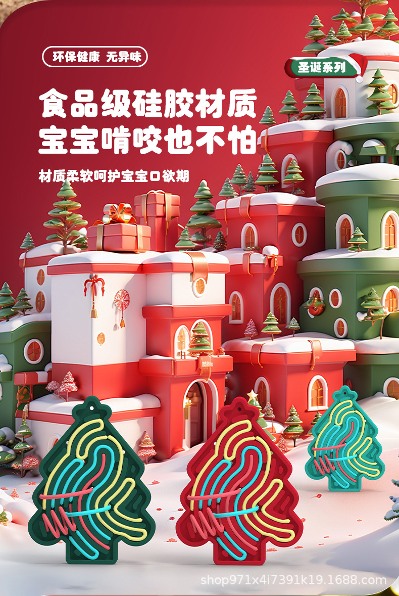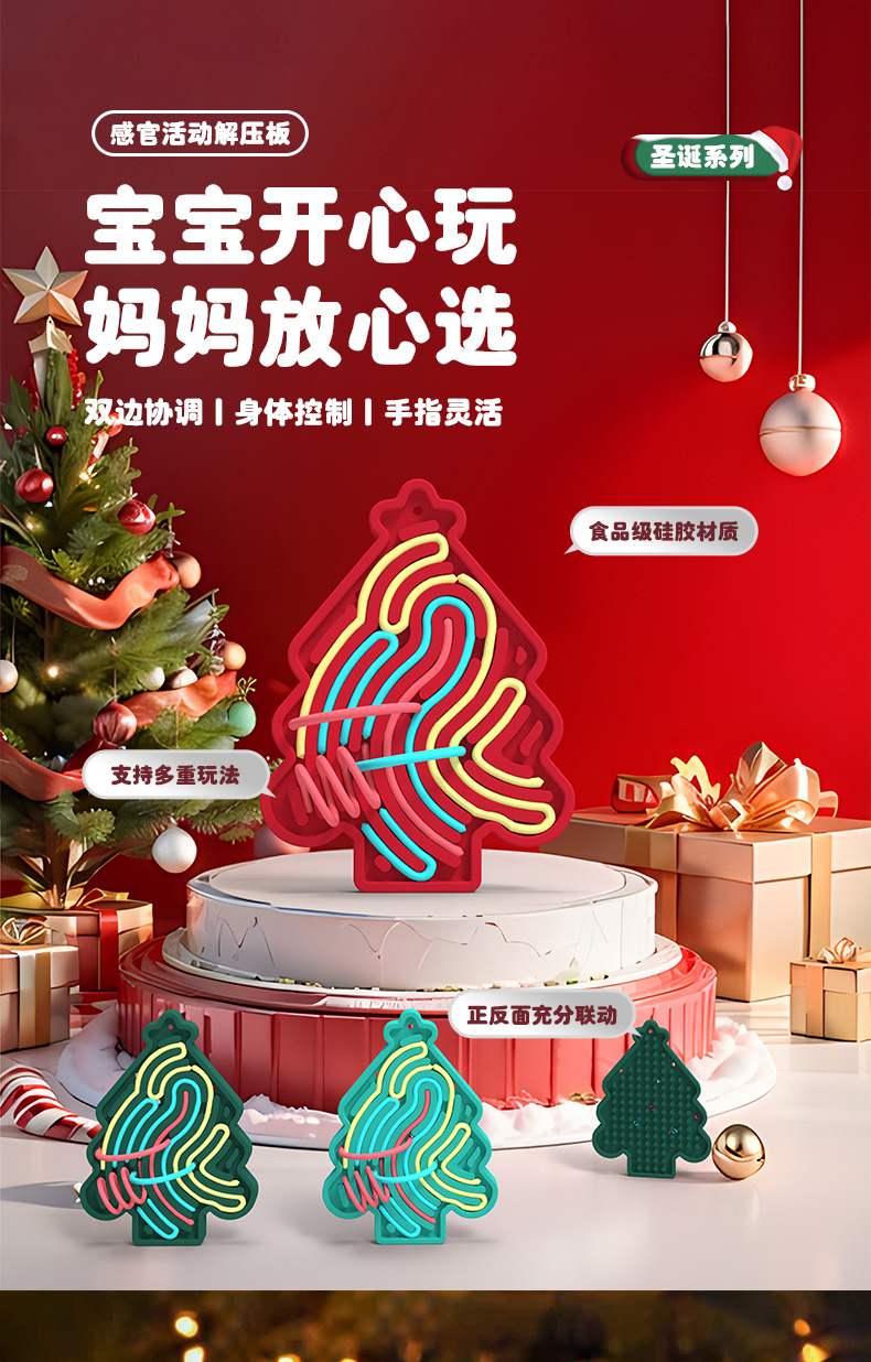 Amazon venta caliente de placas sensoriales de Navidad árbol de silicona material versión descomprimida puzzle niños regalos de Navidad al por mayor