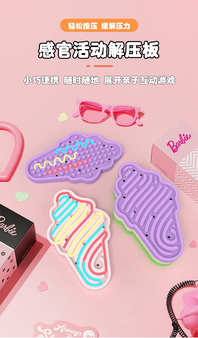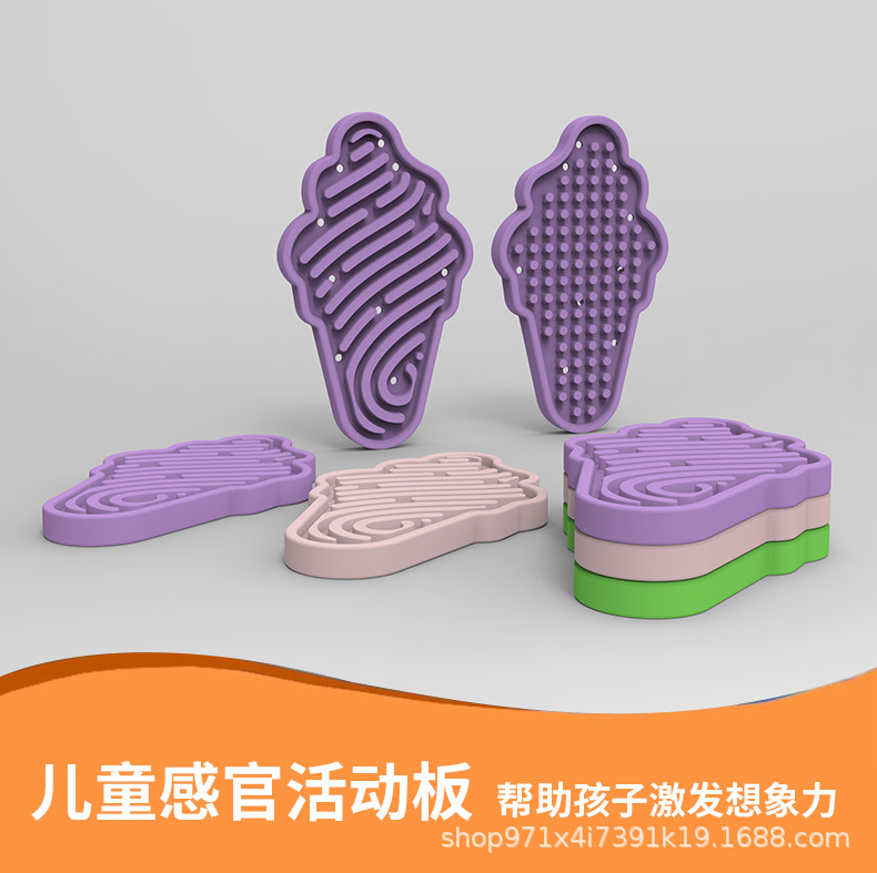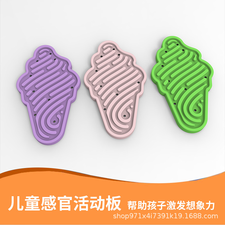 Amazon venta caliente silicona ecológica placa sensorial infantil forma de helado puzzle tablero de actividad ecológica libre de BPA