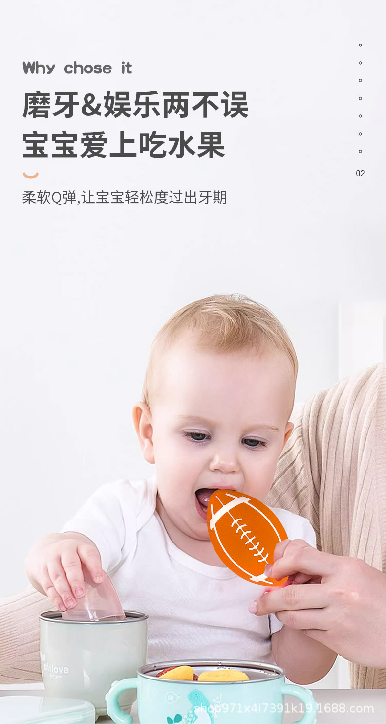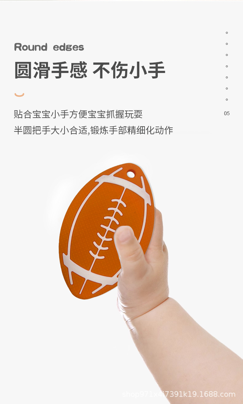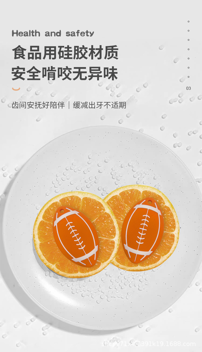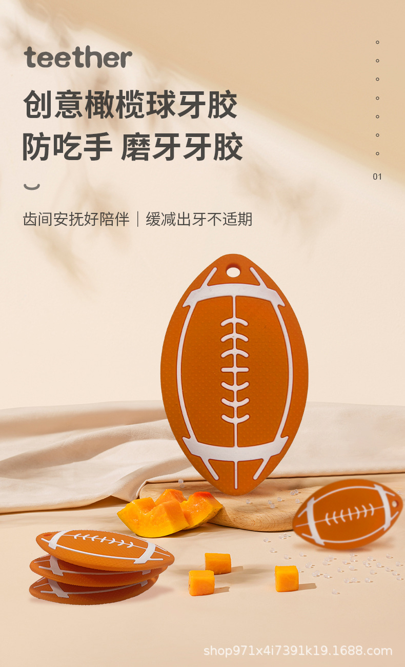 Amazon venta transfronteriza nueva goma de silicona de rugby para bebés tranquilizadores de calidad alimenticia mordiendo le goma de silicona madre e infante