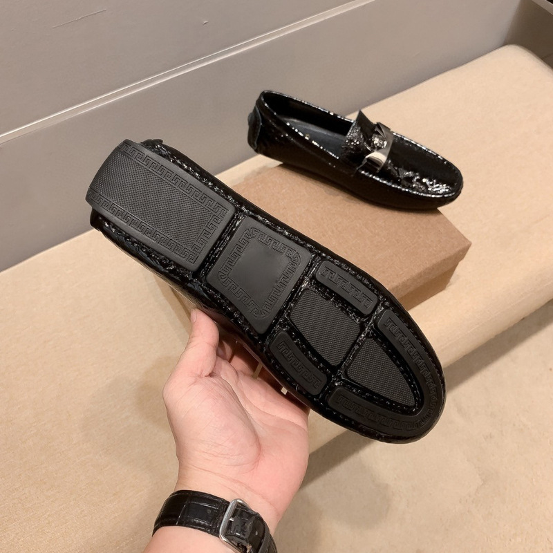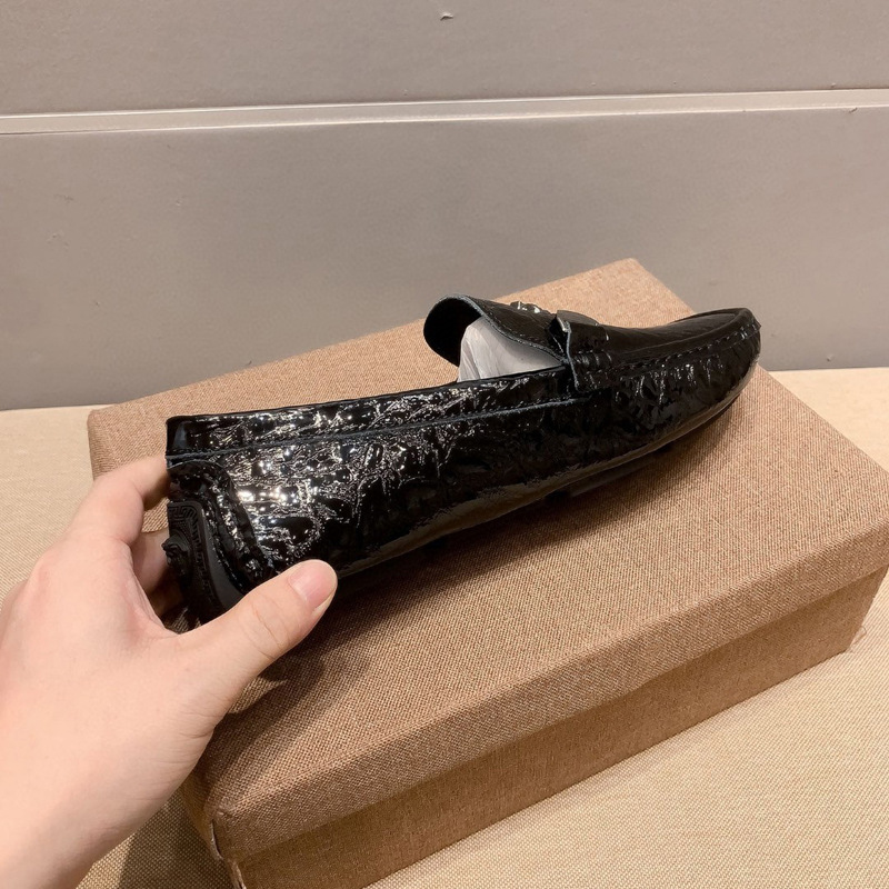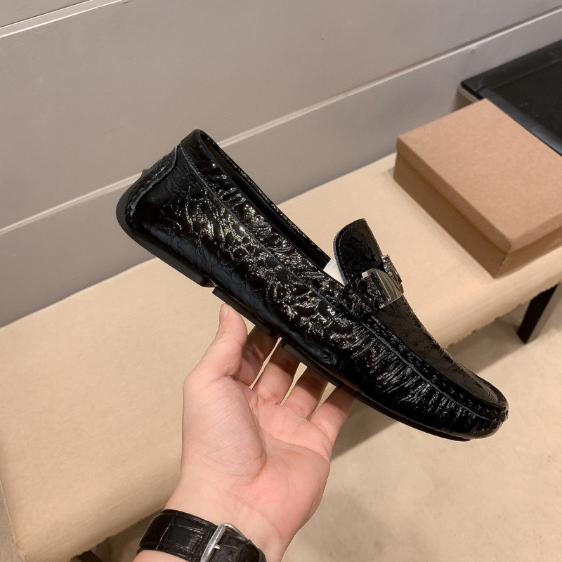 Zapatos de cuajada de cuero brillante, zapatos casuales de cuero de lujo ligero en relieve de tendencia para hombres, suela suave, cómodos zapatos perezosos de negocios de un solo pedal para hombres