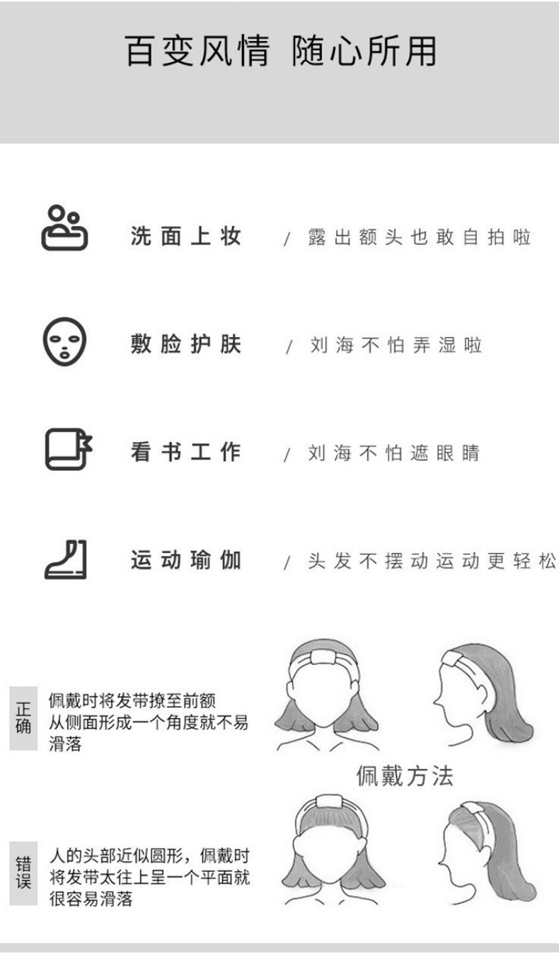 | Color | Banda de cabello púrpura, banda de cabello azul cielo, banda de cabello rosa, banda de cabello gris, banda de cabello blanco, banda de cabello beige, banda de cabello negro, banda de cabello rosa, banda de cabello amarillo |