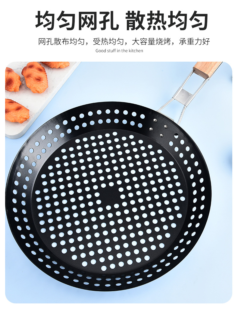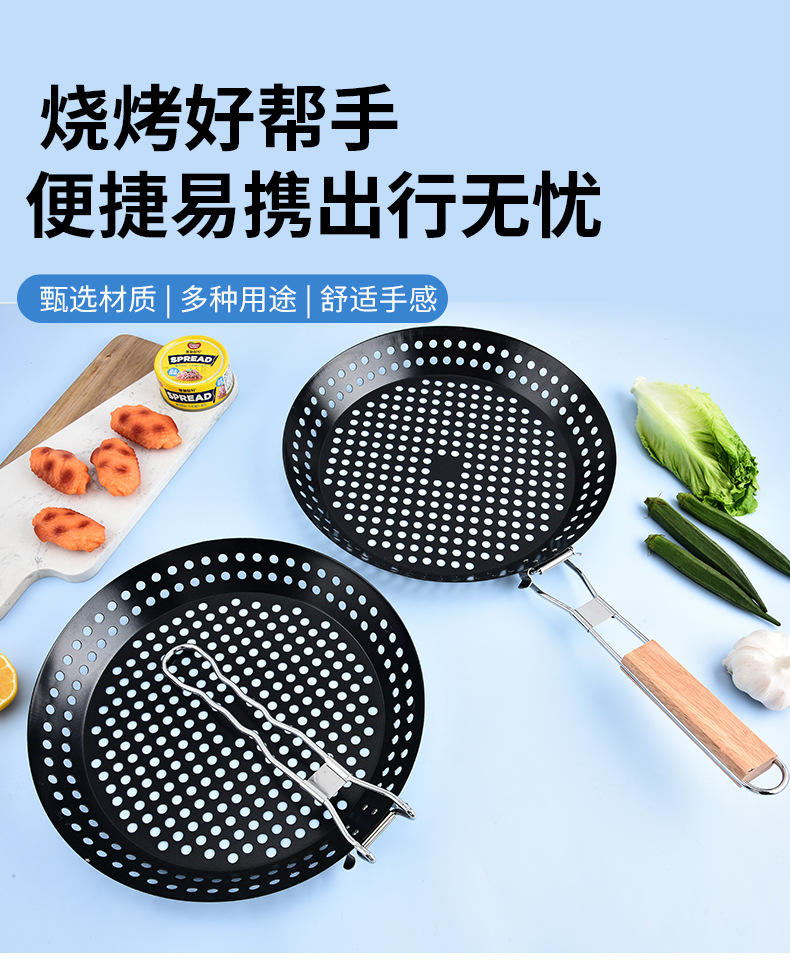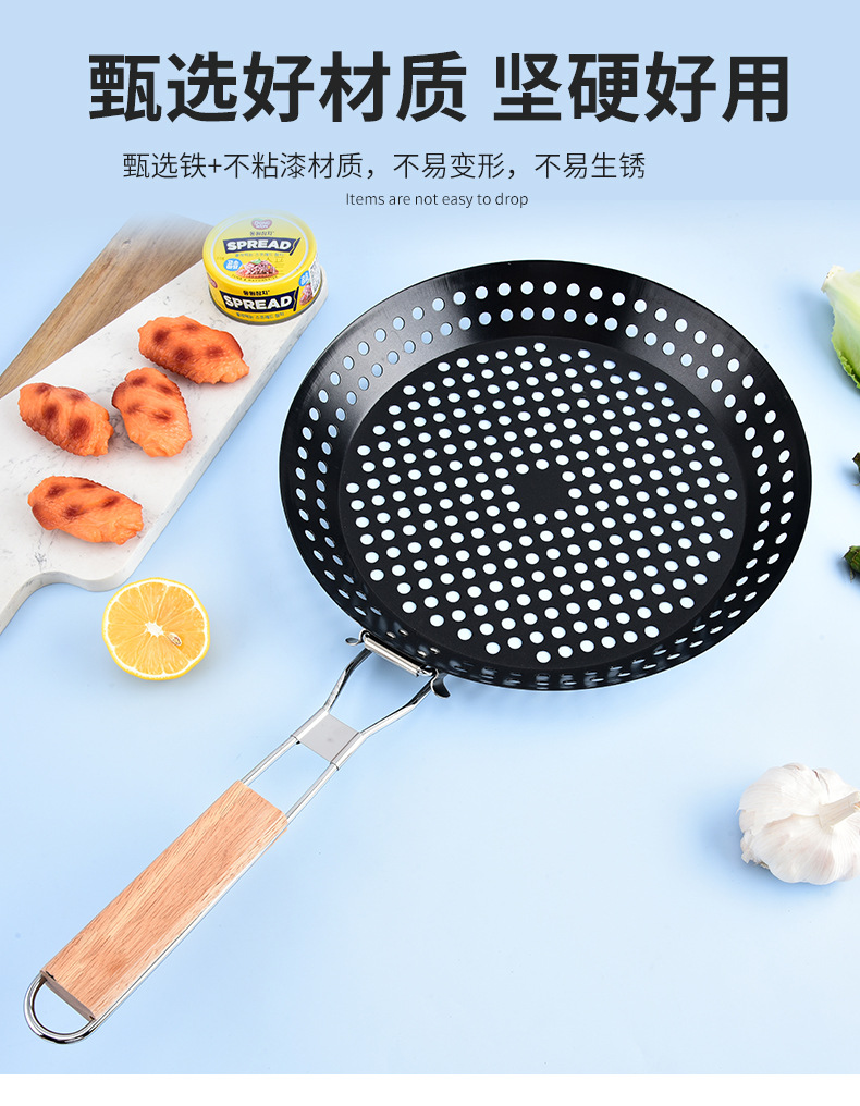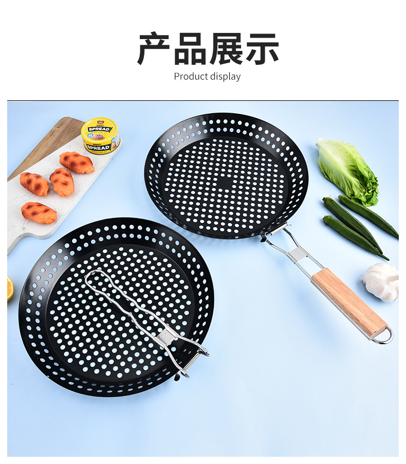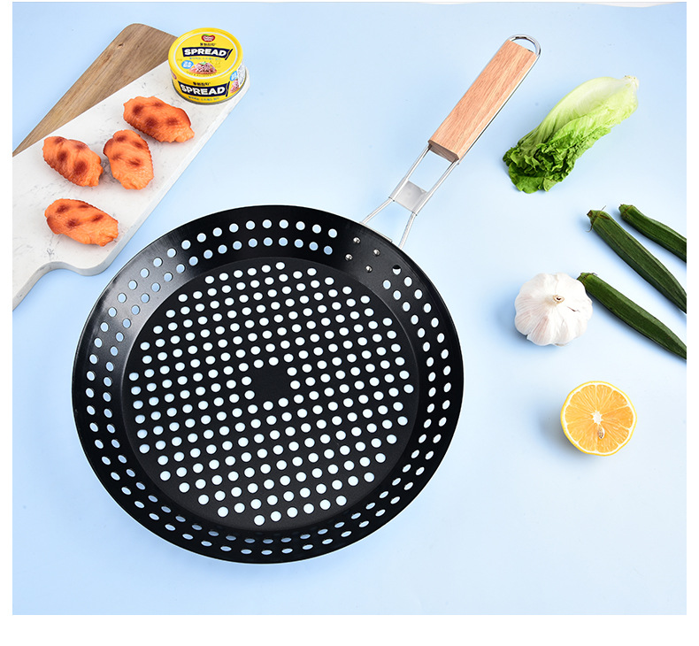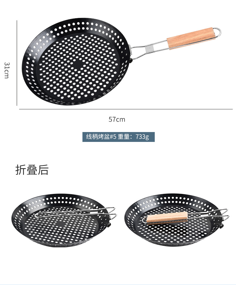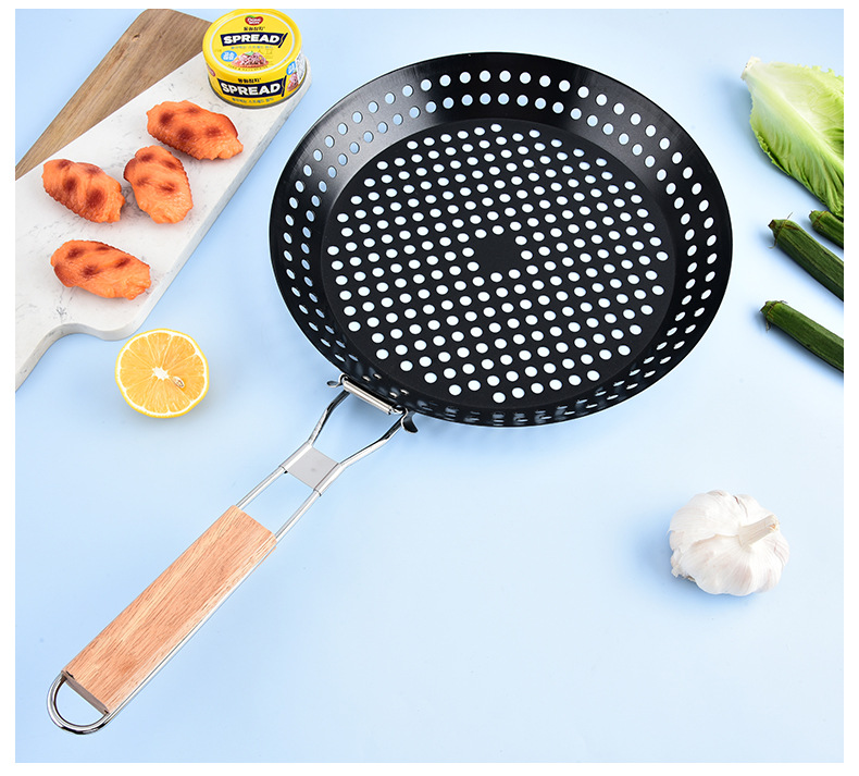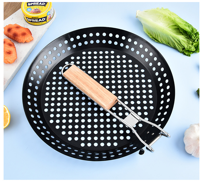 Mango plegable bandeja de barbacoa antiadherente circular hueco bandeja de barbacoa bandeja de verduras cesta de barbacoa al aire libre herramientas de barbacoa