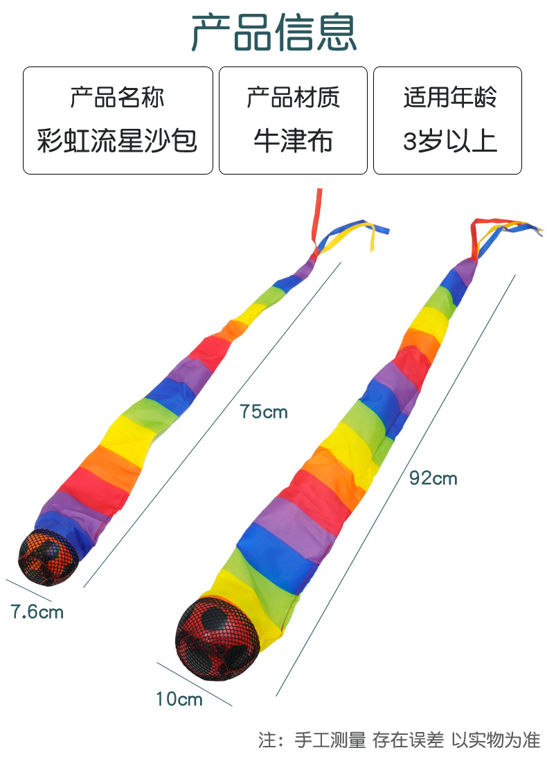 Meteor bola bolsa de arena jardín de infantes equipos de entrenamiento sensorial cinta de color con resistencia al viento softball equipos deportivos para niños lanzando bola