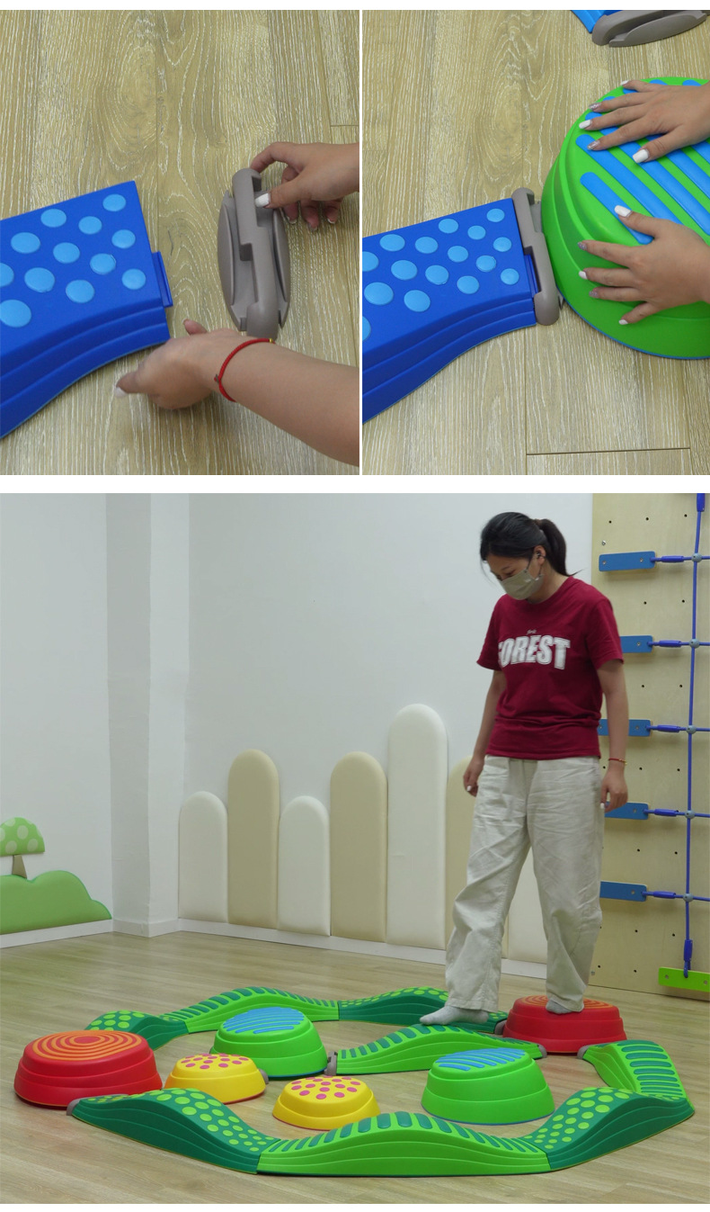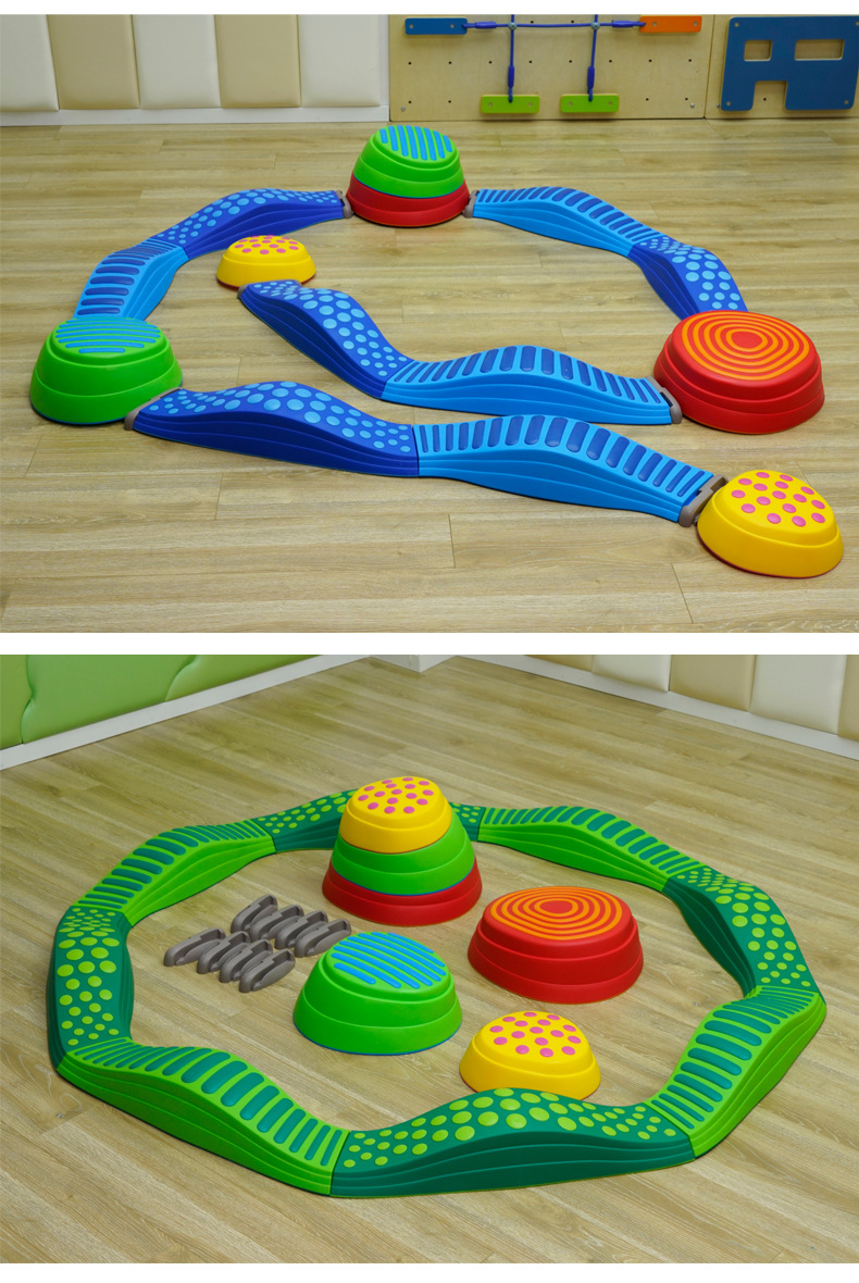 Balance táctil Wave Trail Rainbow River Rock Kids Outdoor Fitness Juguetes de entrenamiento de madera de equilibrio