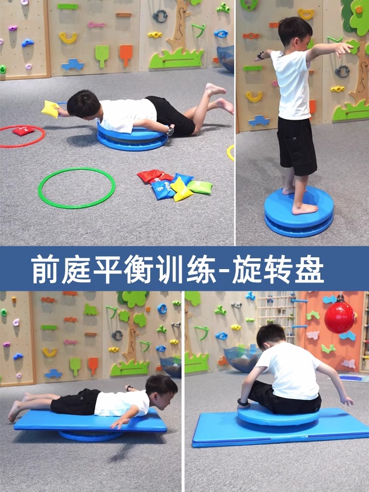 Equipo de entrenamiento de integración sensorial de jardín de infantes, paquete suave de cojinetes, plataforma giratoria circular superior e inferior, entrenamiento de equilibrio vestibular, plataforma giratoria circular
