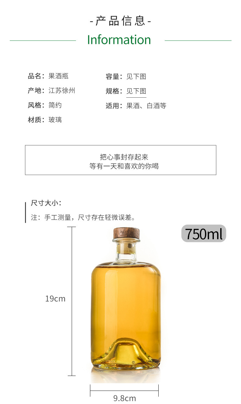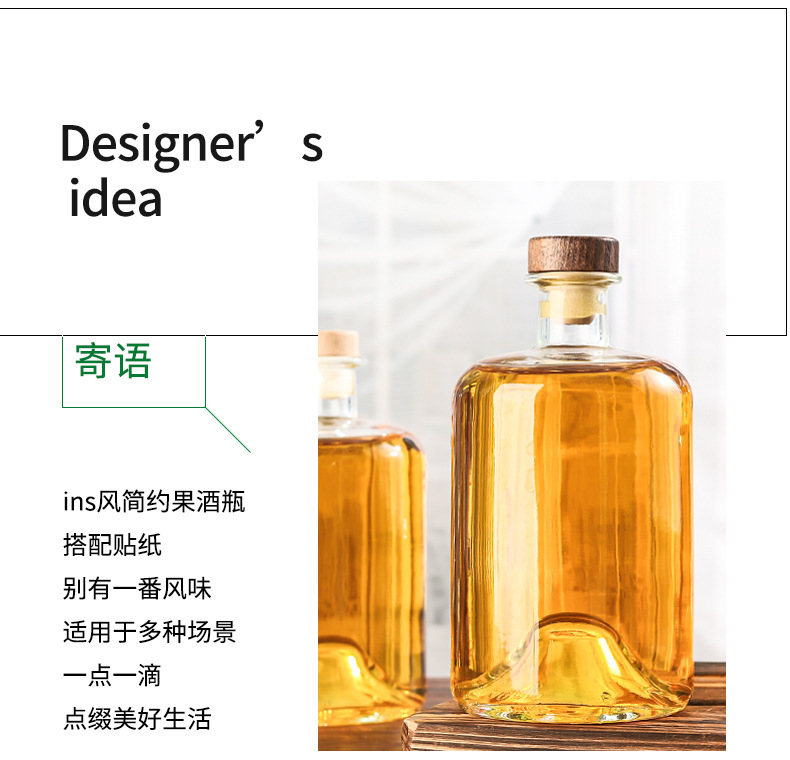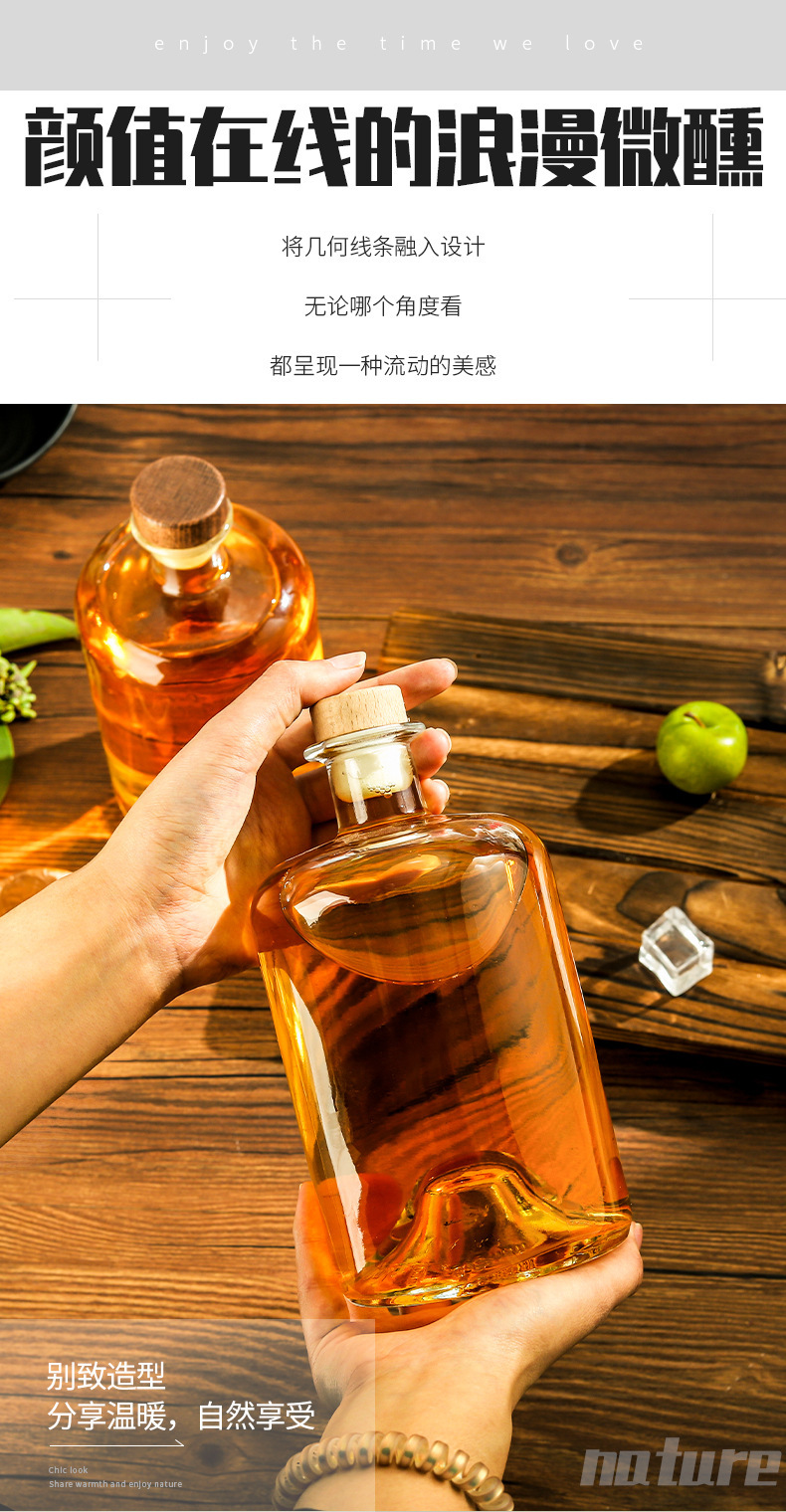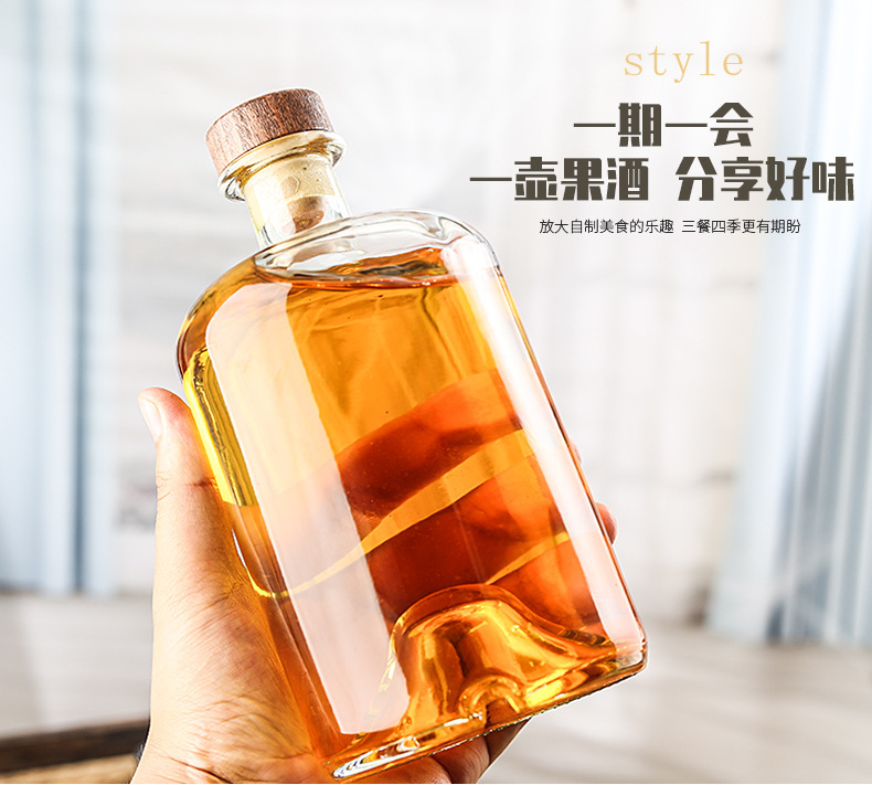 Botella de vodka al por mayor Botella de vino de fondo cóncavo Botella de vino extranjero Botella de vino amarillo de gran capacidad Botella de vino de ciruela transparente Botella de vino de frutas de vidrio