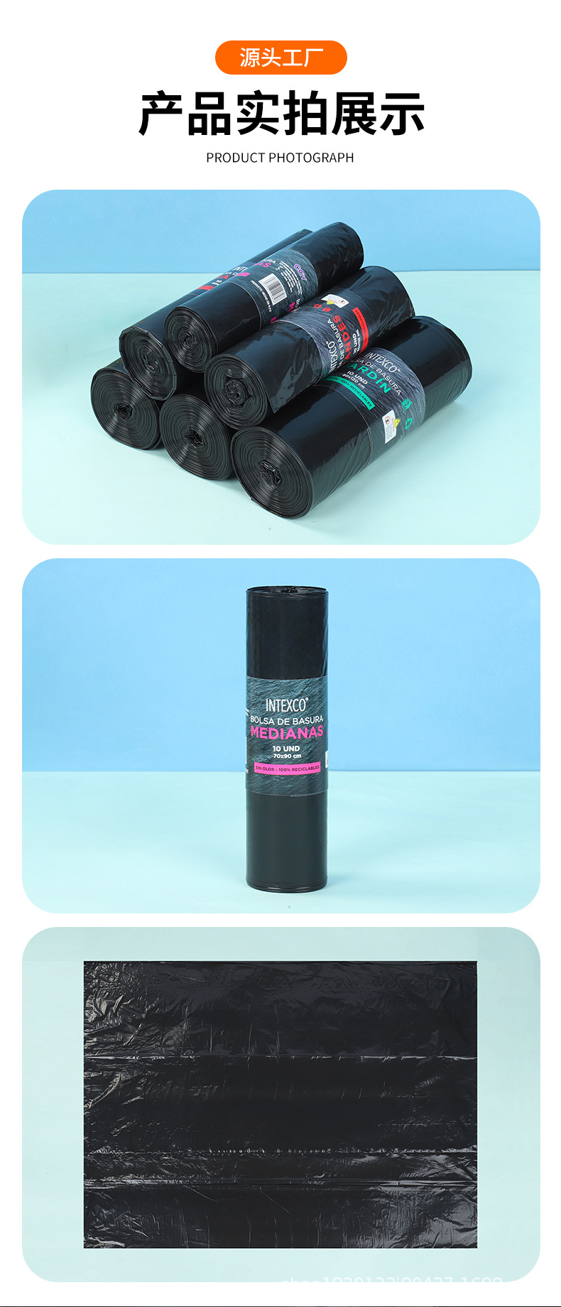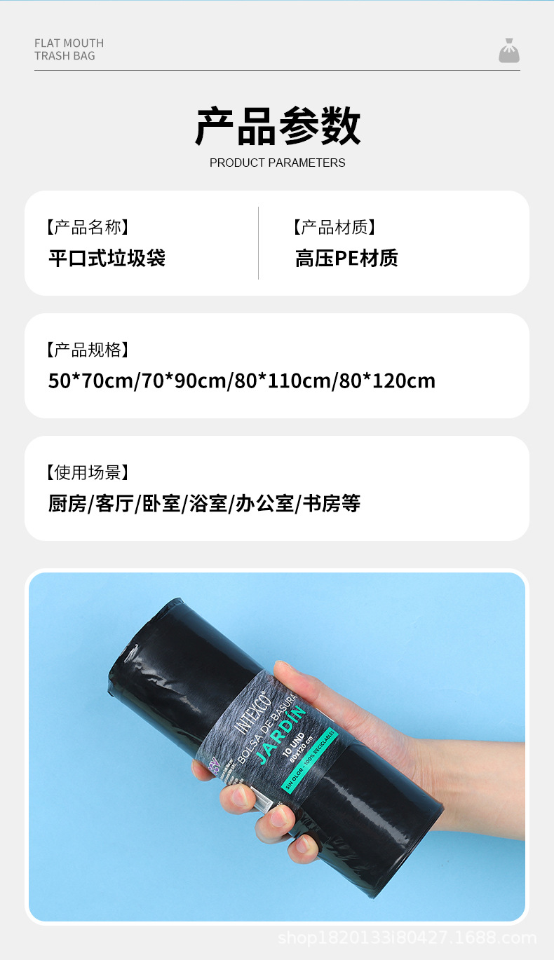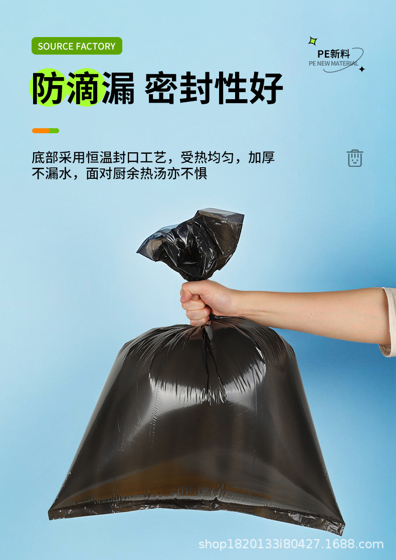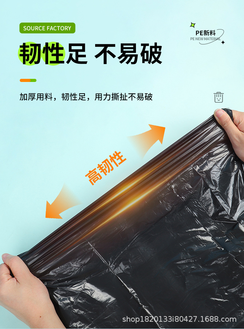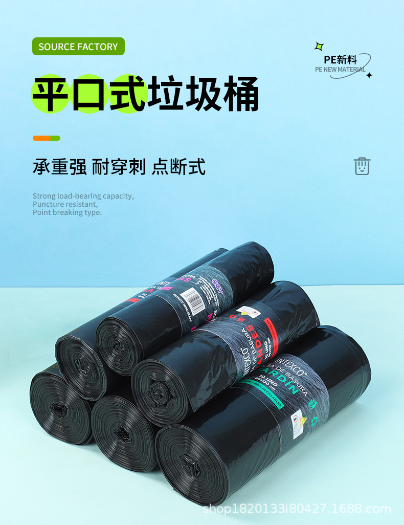 Bolsa de basura negra de boca plana para el hogar de múltiples especificaciones, baño de dormitorio, cocina gruesa, sala de estar, bolsa de basura de punto de ruptura