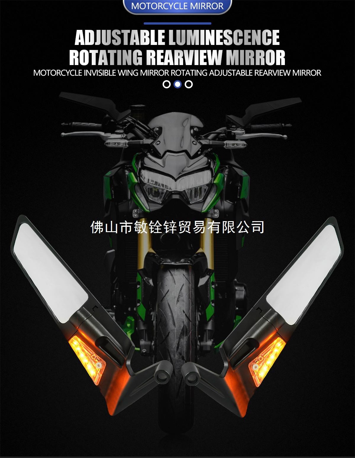 Espejo retrovisor de motocicleta con luz de dirección para Kawasaki Z1000 Z900 Z800 Z750 Z650 Z400