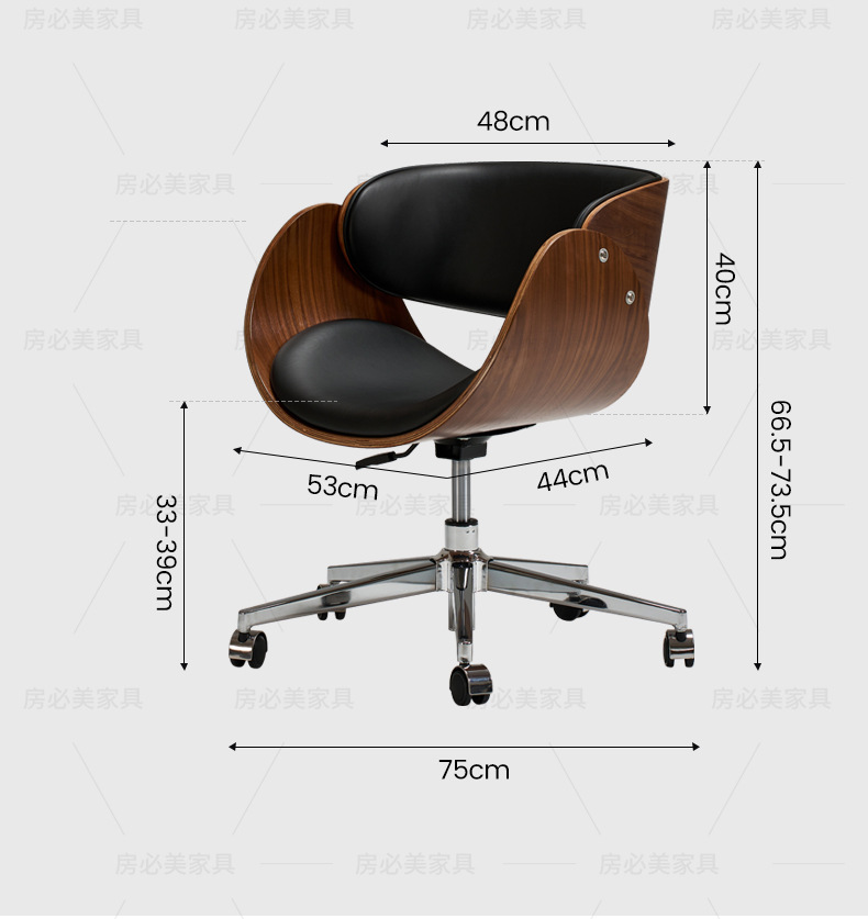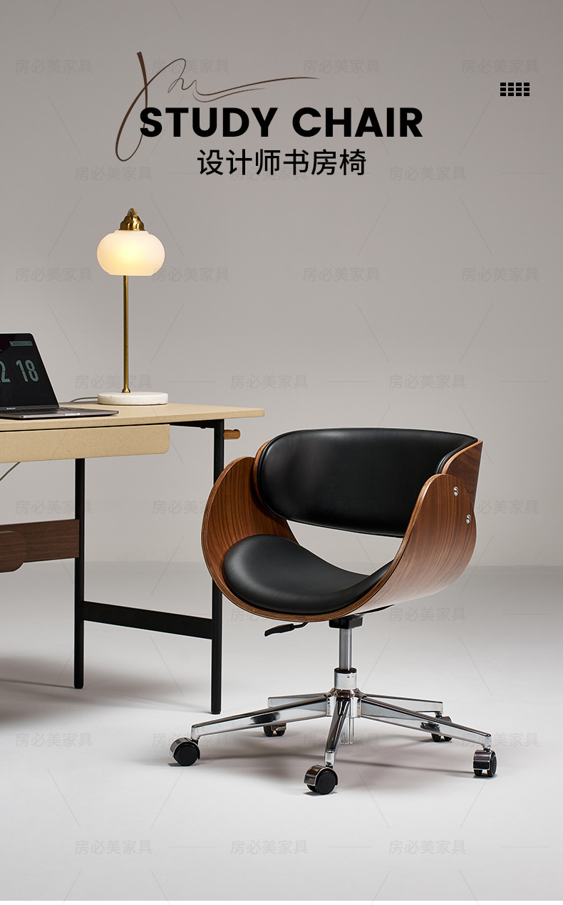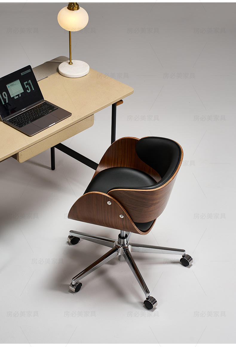 Silla de oficina casual moderna y sencilla elevable y giratoria silla de madera maciza silla de escritorio de cuero de vaca