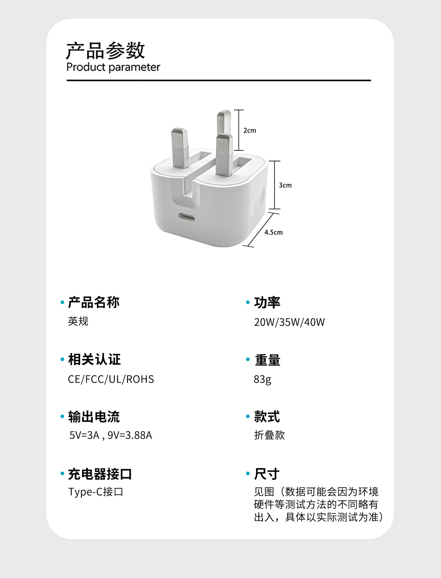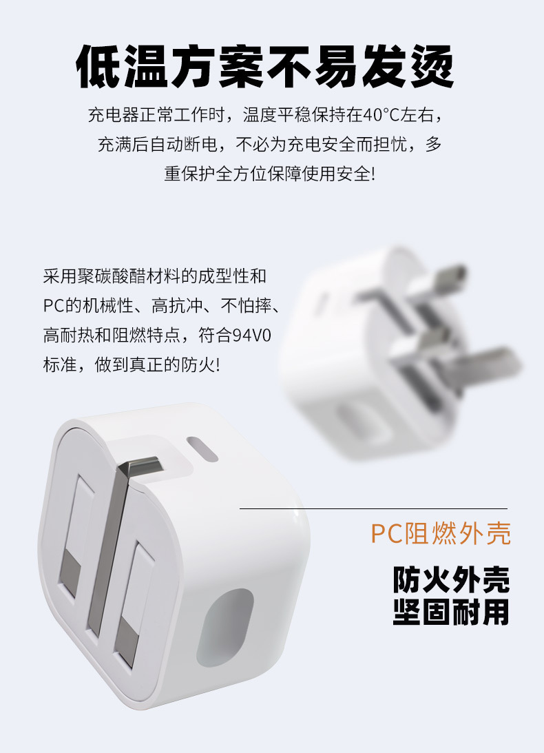Cabeza de carga de carga rápida estándar británica PD20W/35W para cargador de Apple Cabeza de typec con certificación UKCA plegable de tres patas