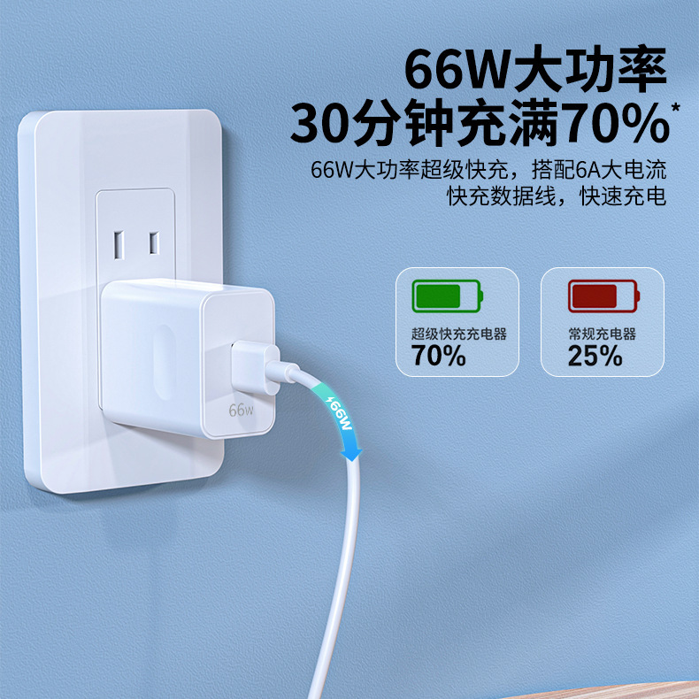 Cabeza de carga rápida certificada 3C Cargador de carga súper rápido de 66W para cargador Huawei Juego de Honor Cable de datos 6A