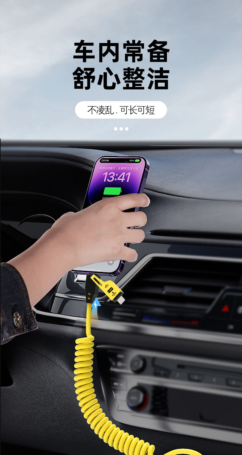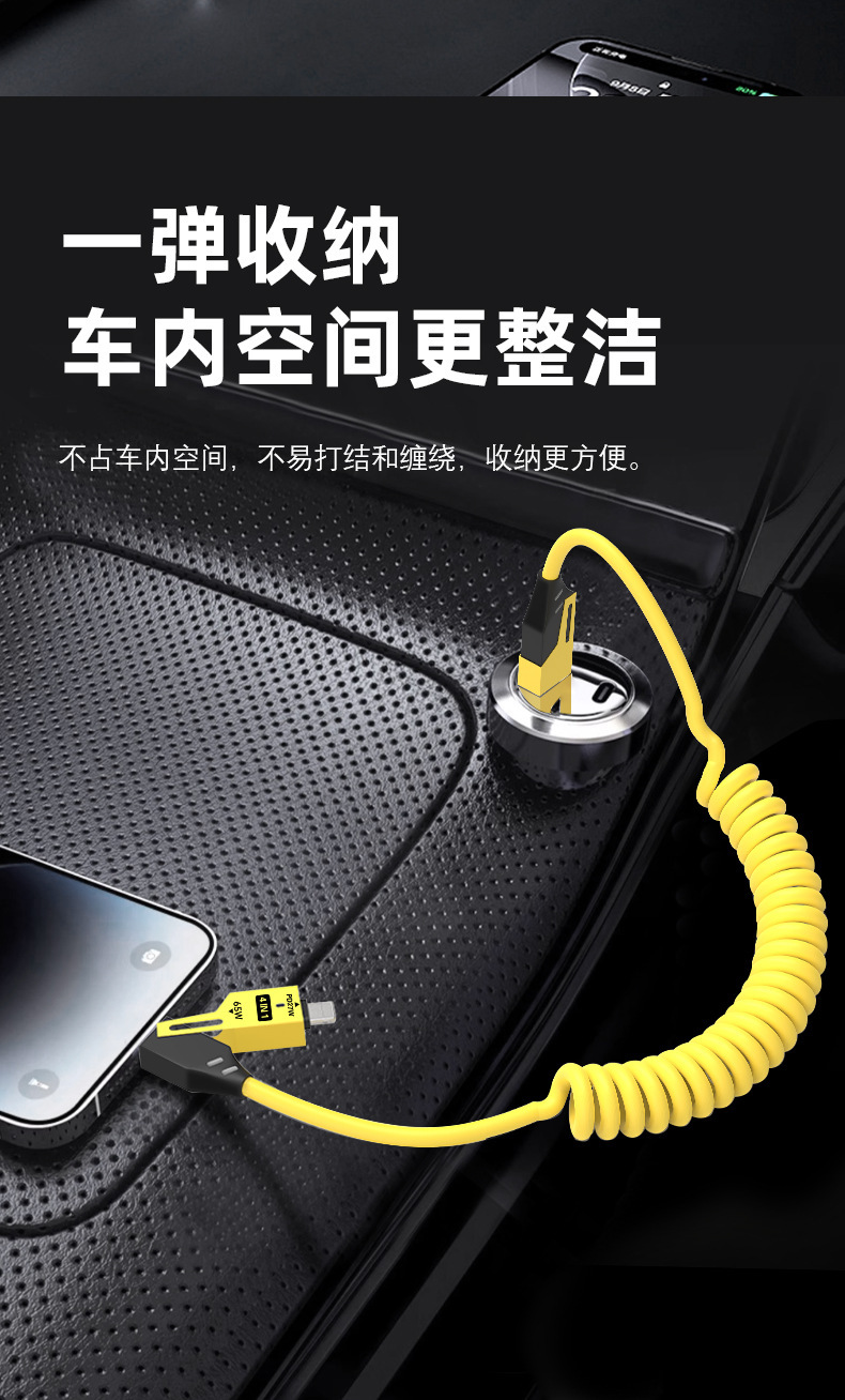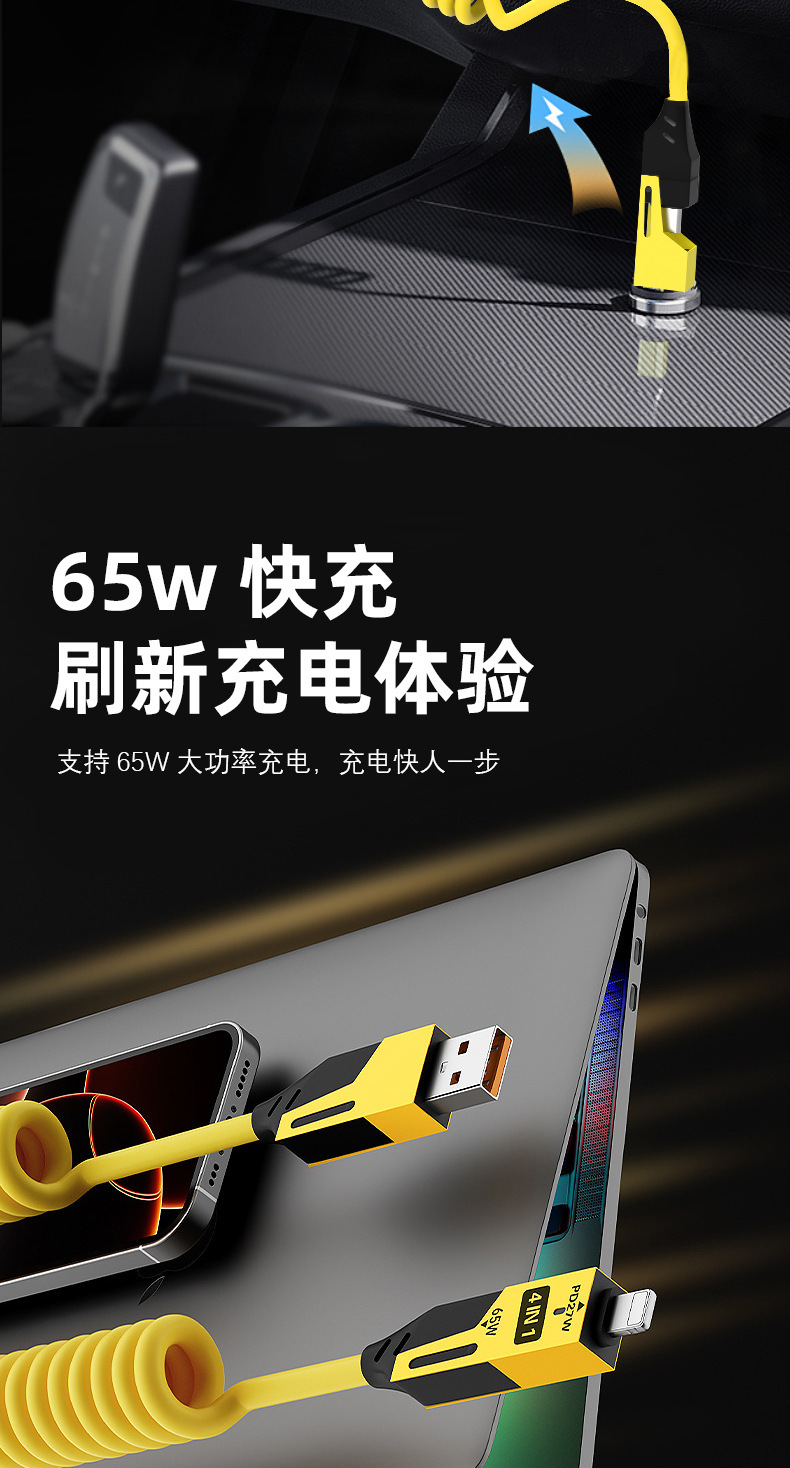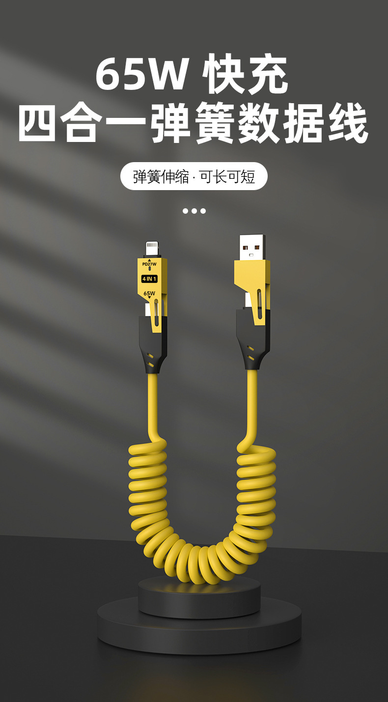 65W cable de datos telescópico de resorte de carga rápida 2 - drag 2 - 4 - en - 1 cable de carga para automóviles para Apple Huawei carga rápida