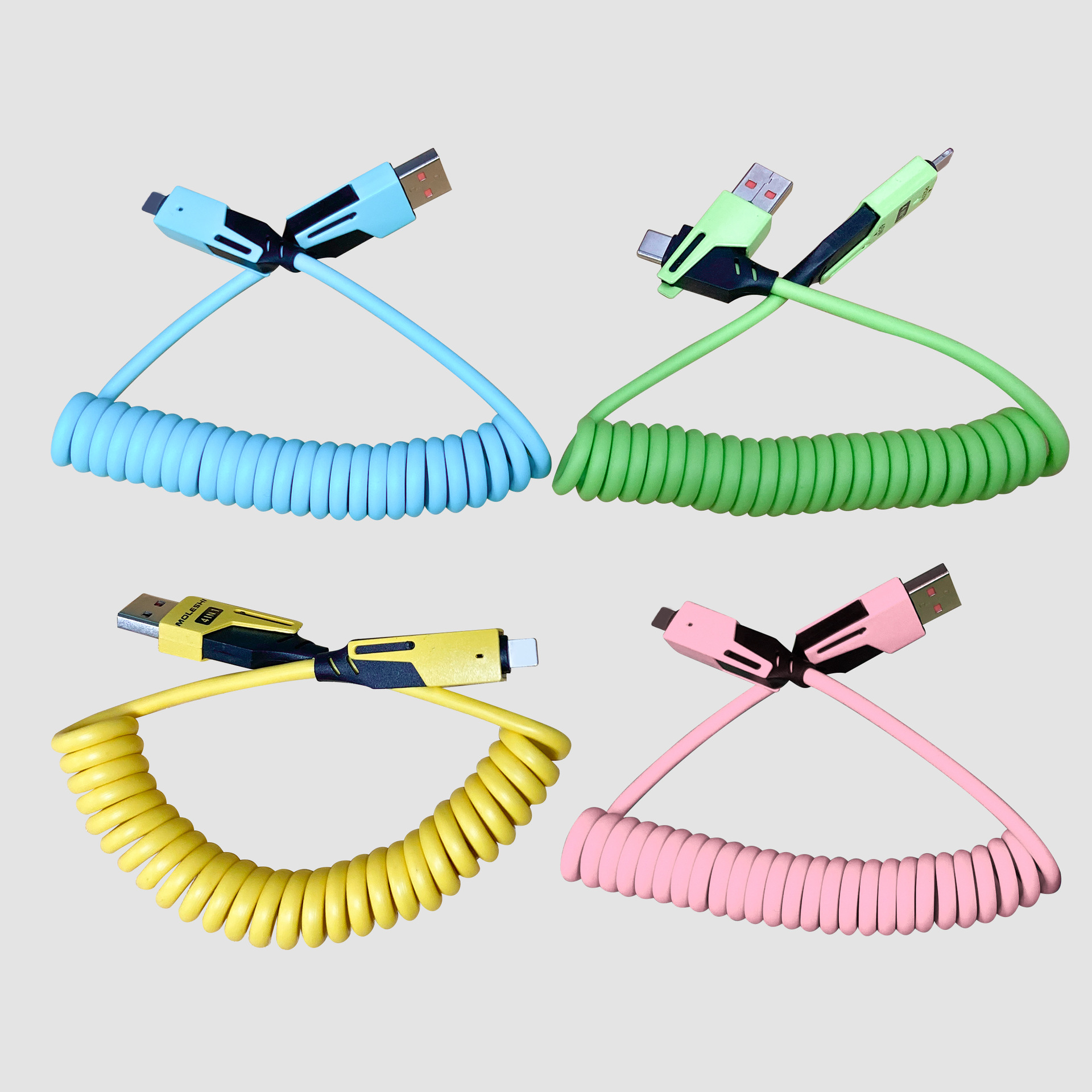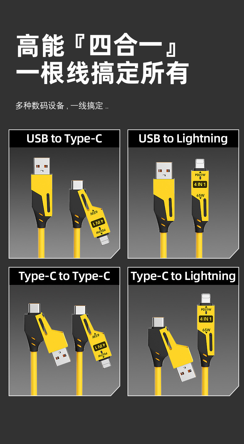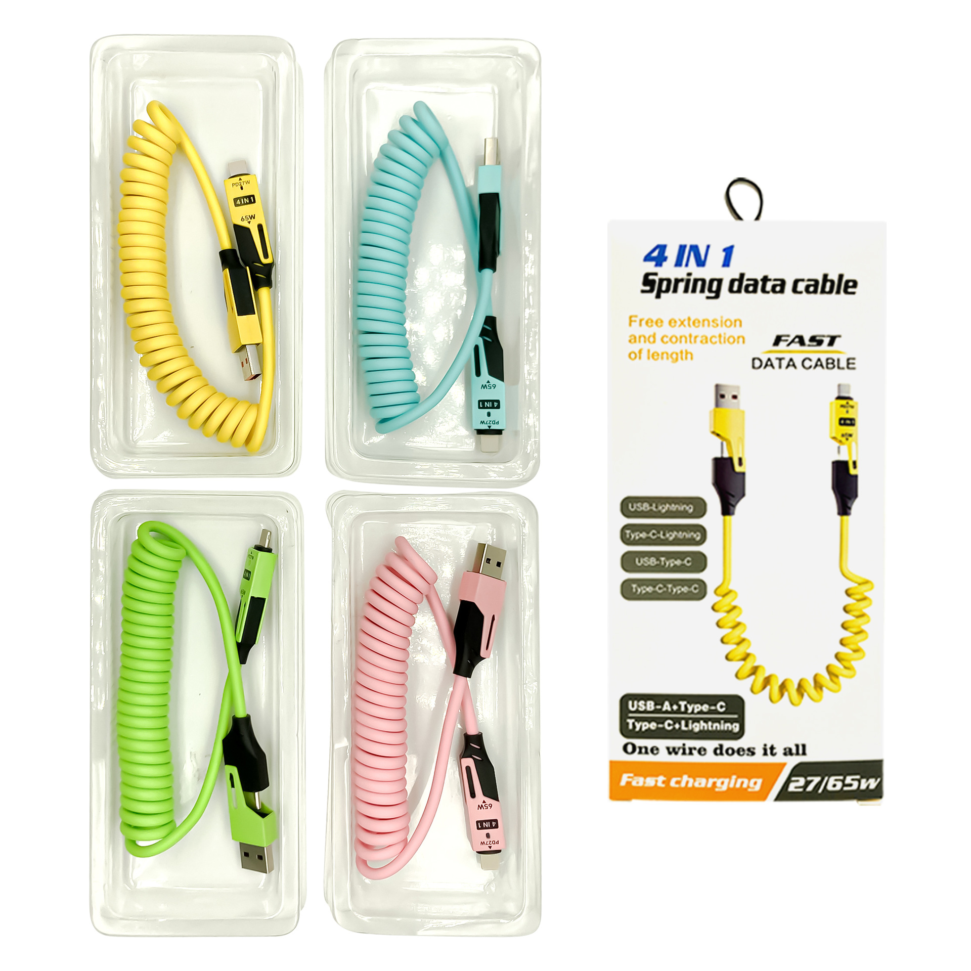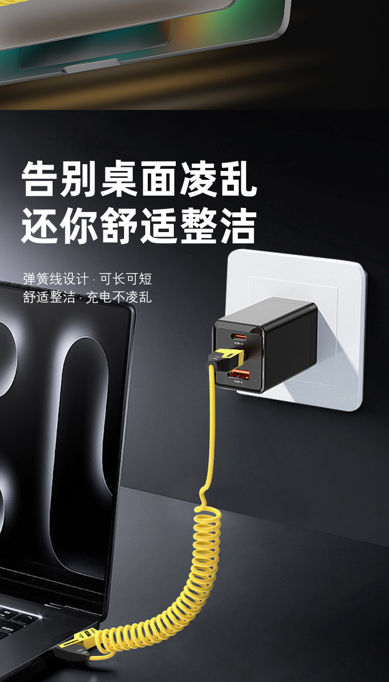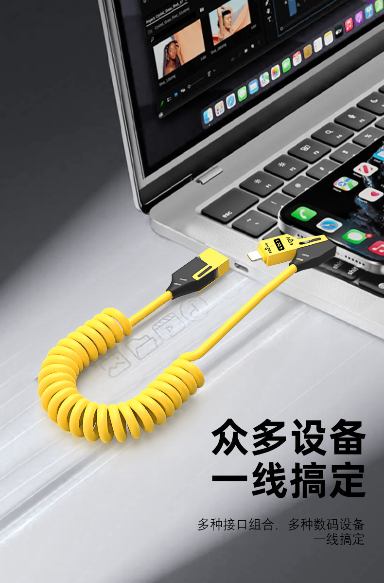 65W cable de datos telescópico de resorte de carga rápida 2 - drag 2 - 4 - en - 1 cable de carga para automóviles para Apple Huawei carga rápida