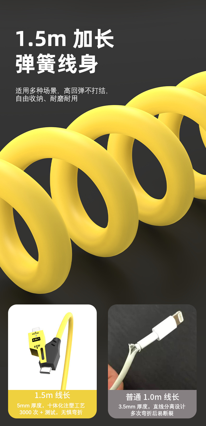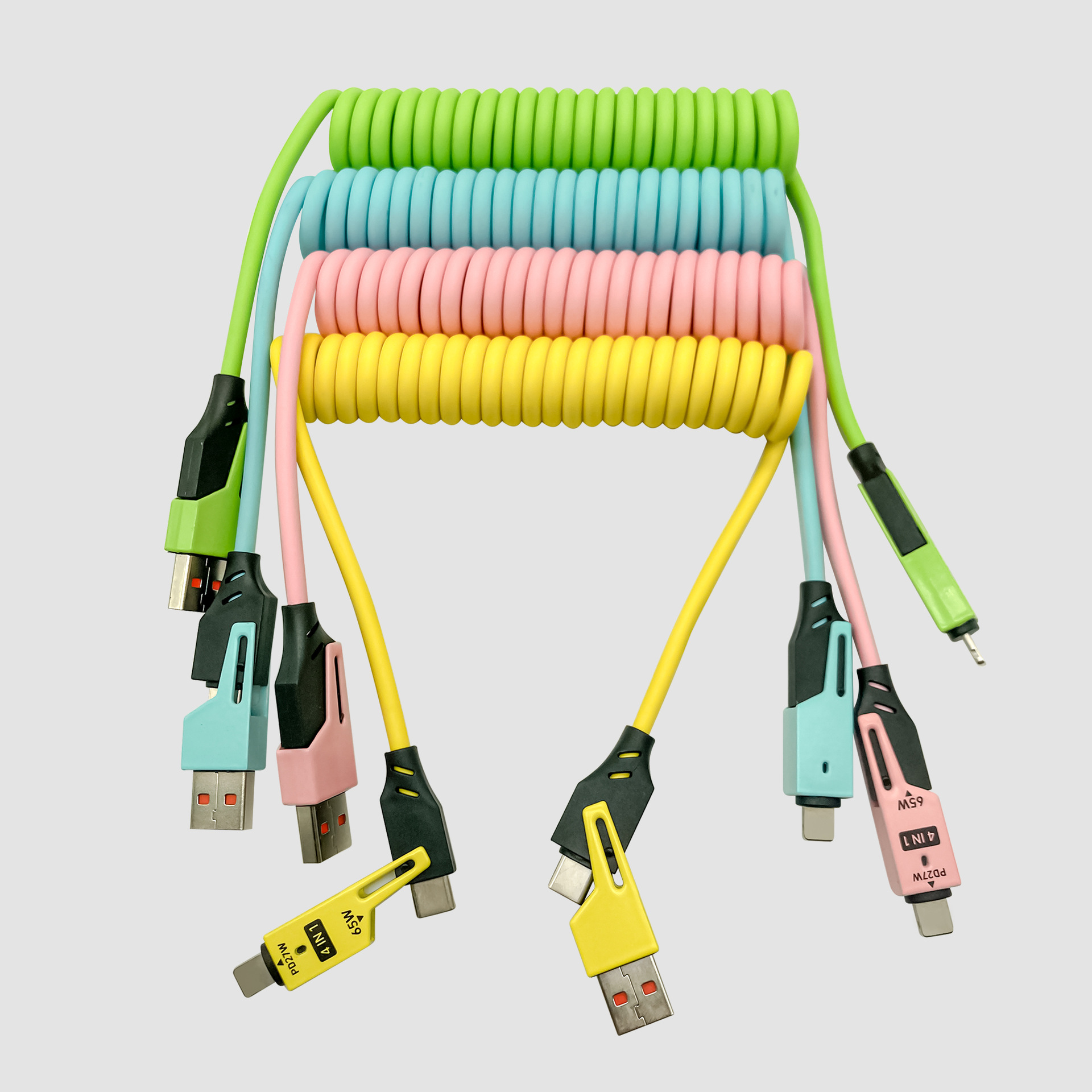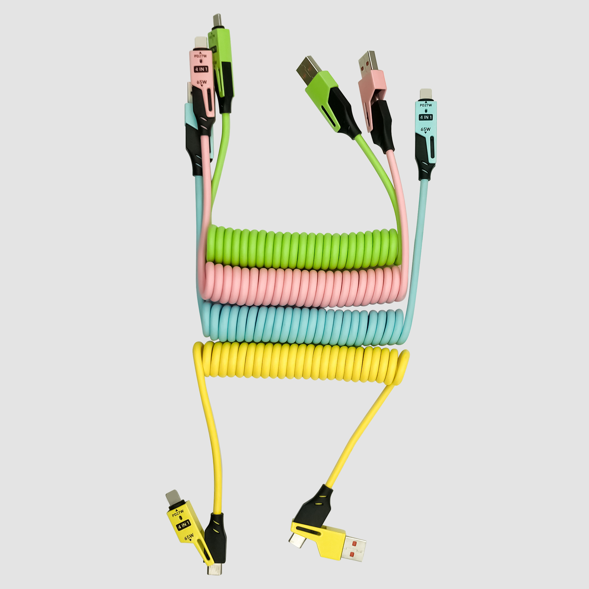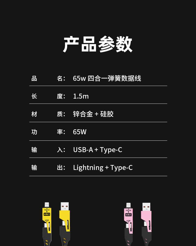 65W cable de datos telescópico de resorte de carga rápida 2 - drag 2 - 4 - en - 1 cable de carga para automóviles para Apple Huawei carga rápida