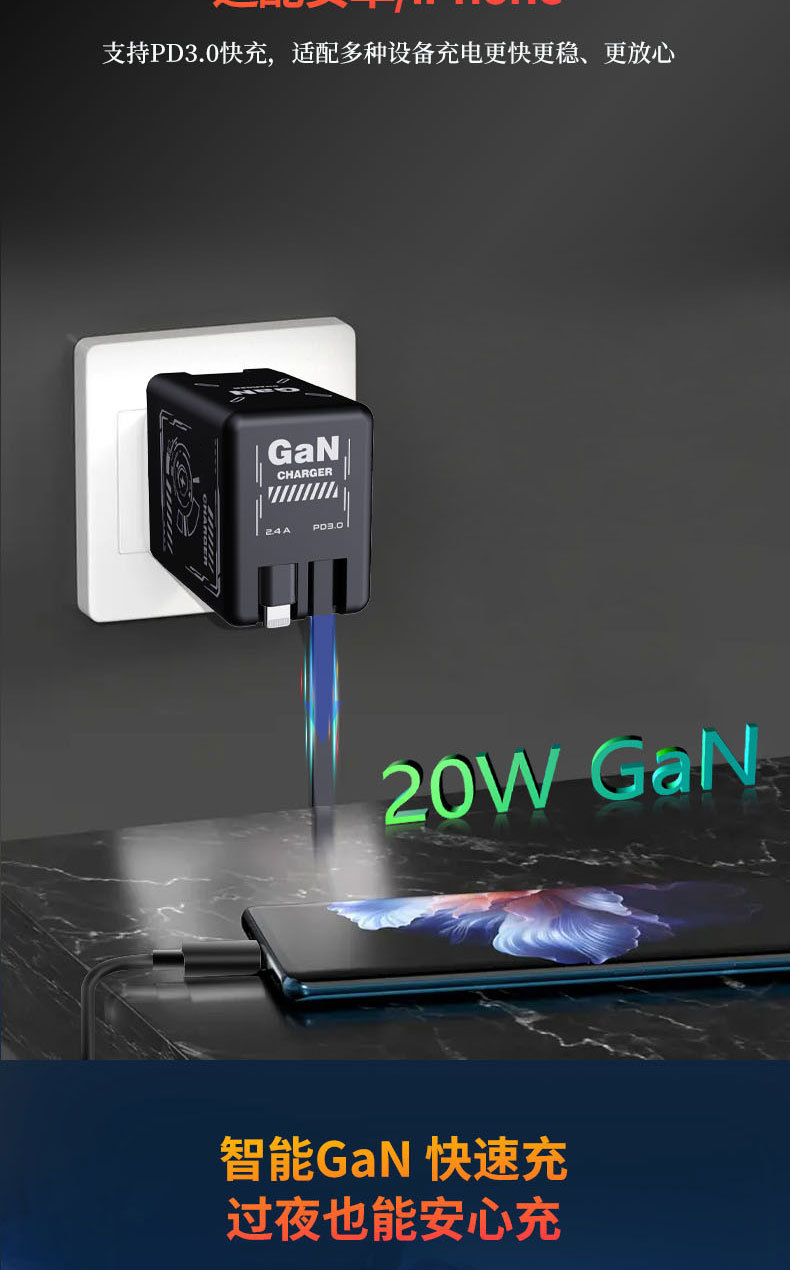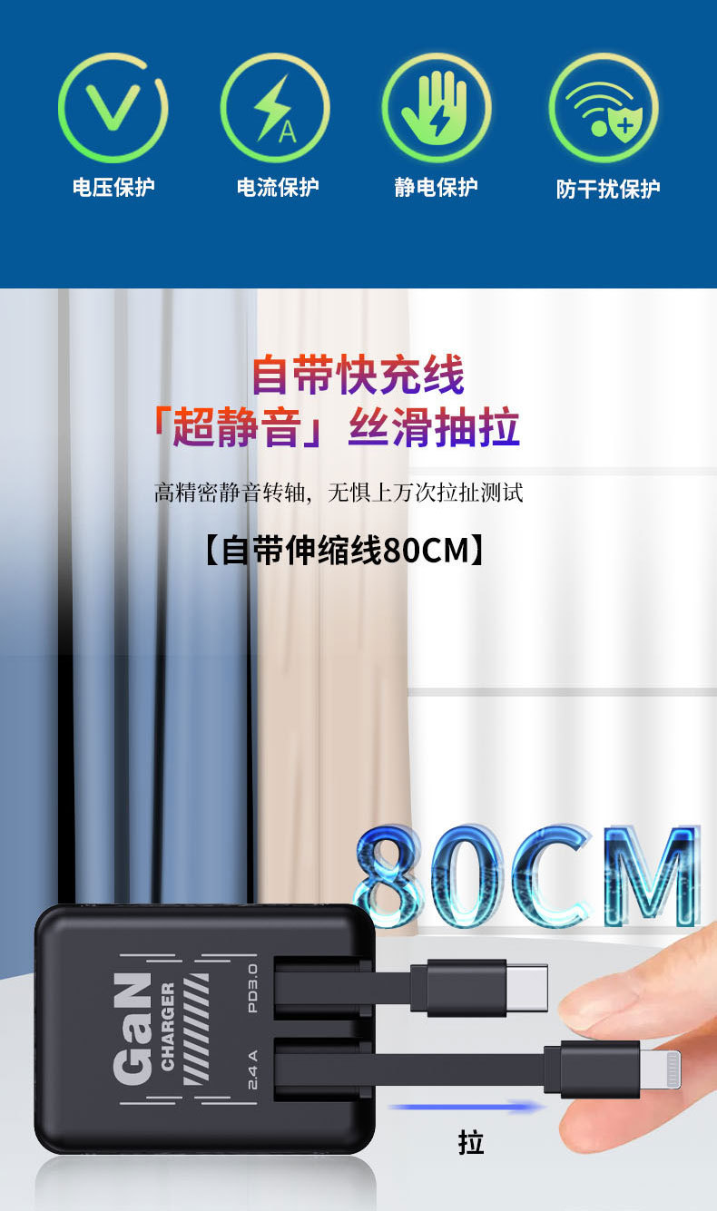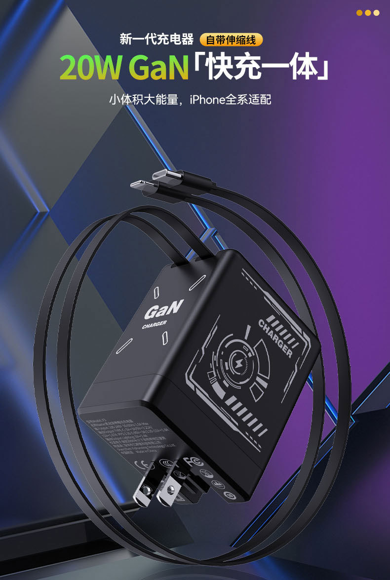 Transfronterizo 120W GaN cargador cable de datos retráctil typec para Apple 17 Huawei cabeza de carga rápida